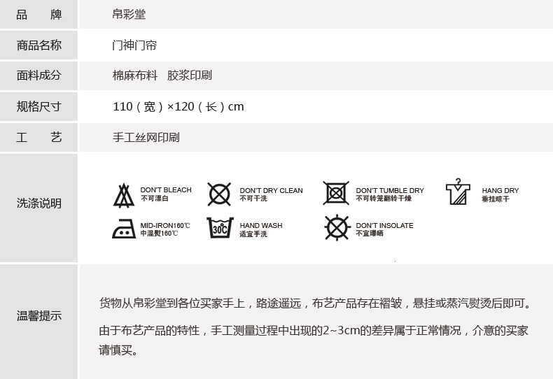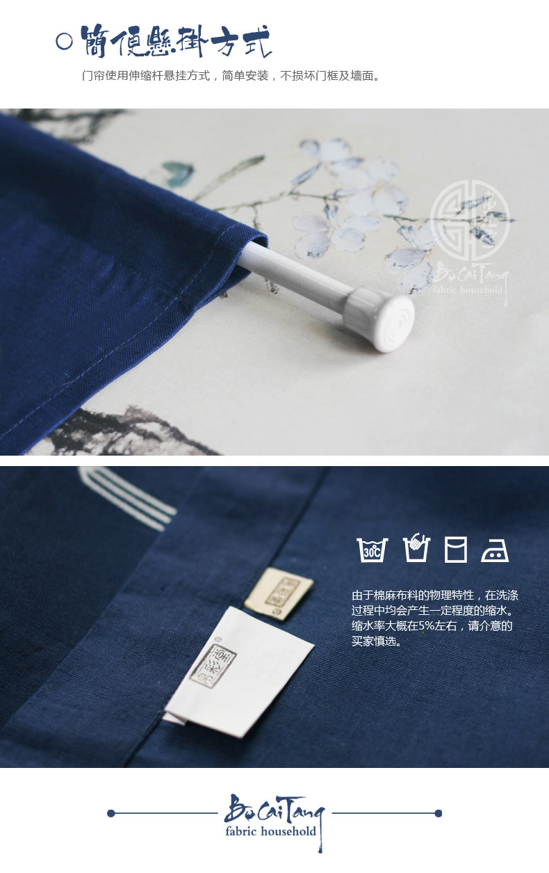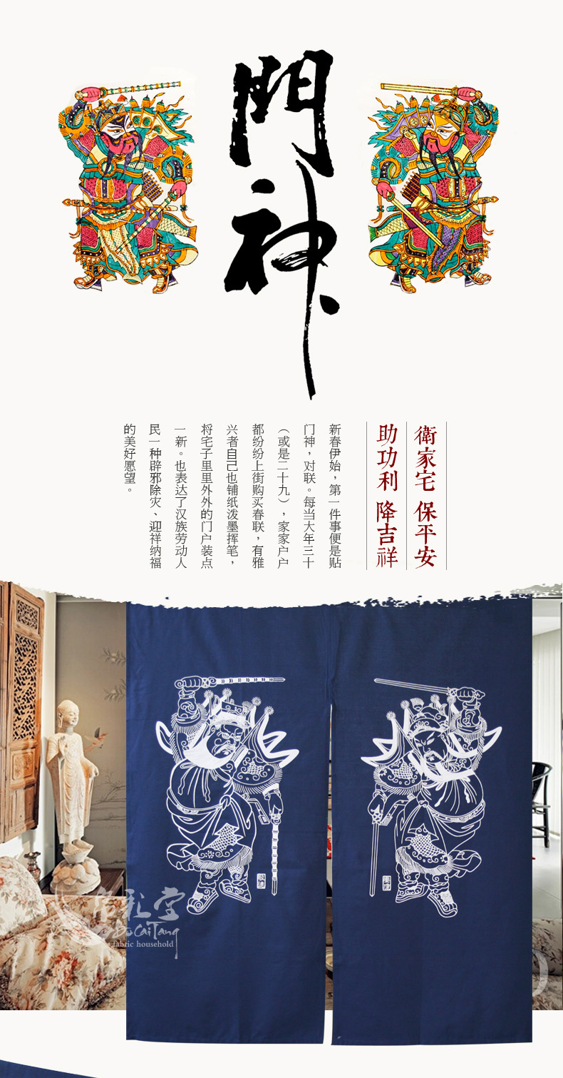 門神-化纖面料分片90寬*120長 送桿帛彩堂 棉麻中式家居門簾風水簾日式玄關簾 臥室簾 隔斷掛簾 多款