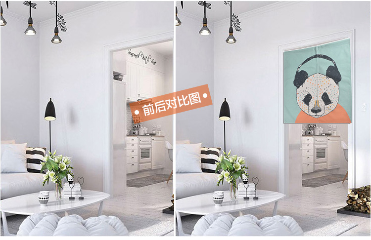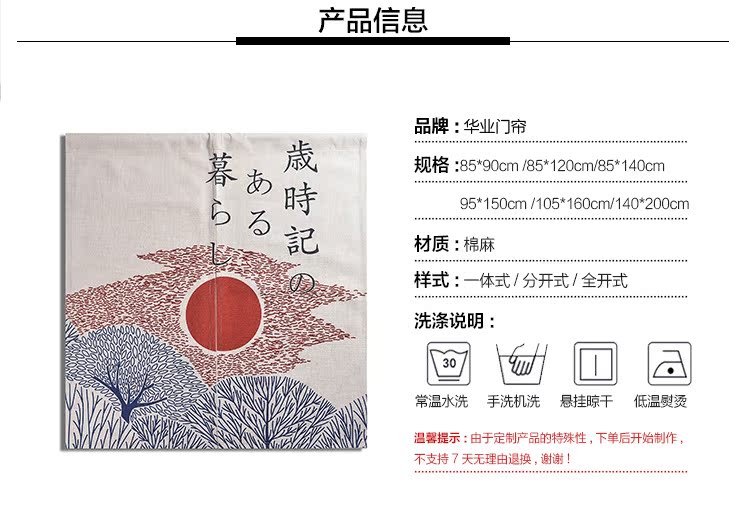 米白色95*150cm可定制個性風景布藝棉麻臥室門簾裝飾簾加厚客廳風水窗簾廚房門簾