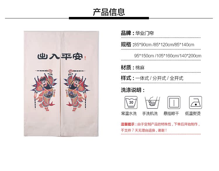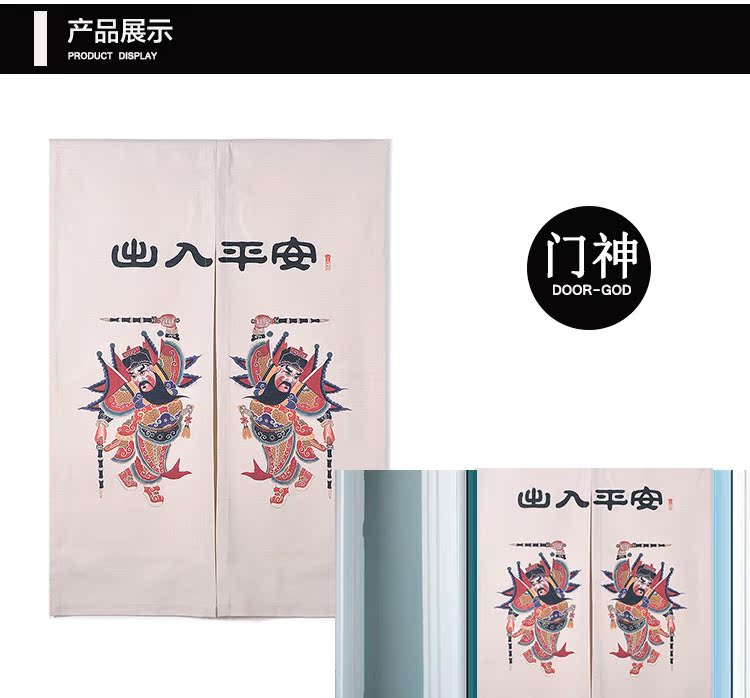 米白色85*90cm風水簾棉麻布藝門簾出入平安關公項羽廚房客廳遮陽掛簾