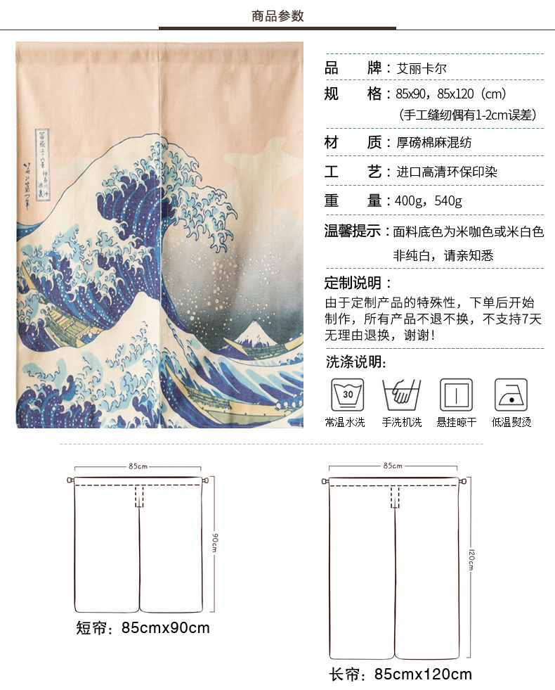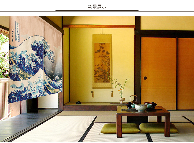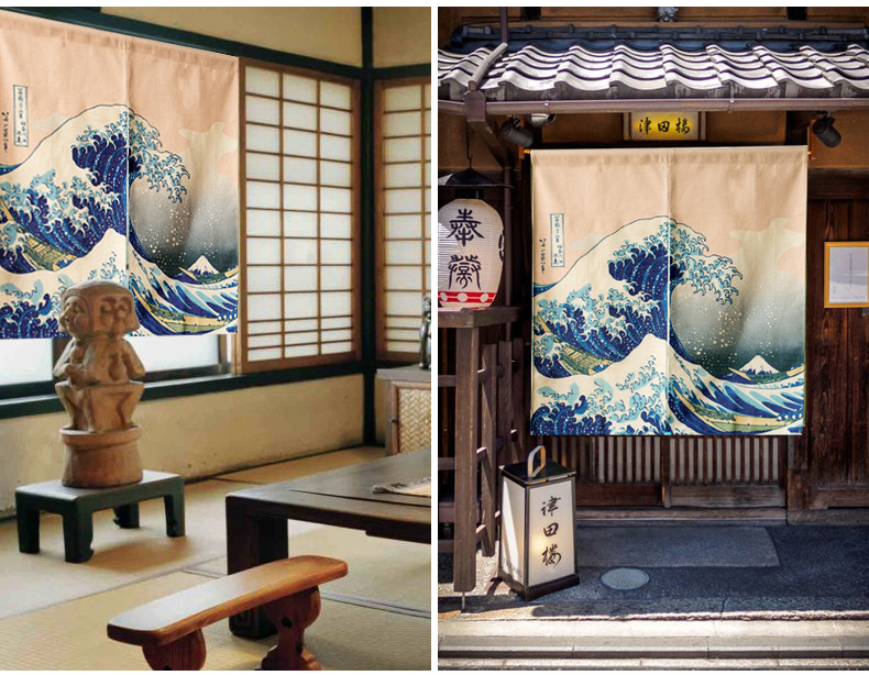 分片式 浮世繪85*120CM門簾日式浮世繪棉麻布藝門簾客廳玄關隔斷簾臥室廚房衛生間半遮光半簾