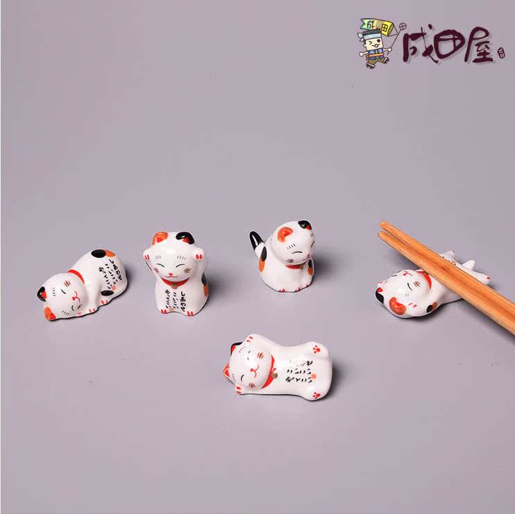 一套5個陶瓷 貓咪 筷子架 招財貓 筷架 精致日式 釉下彩 擺件