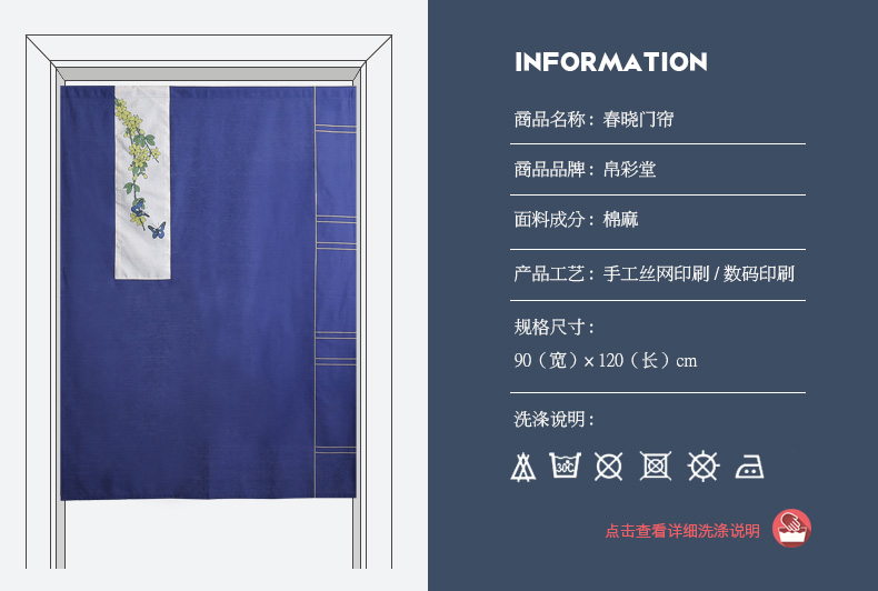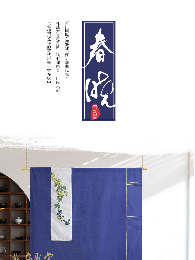 90*120cm 送桿帛彩堂 民族風中式布藝門簾風水簾臥室客廳掛簾裝飾隔斷簾 春曉