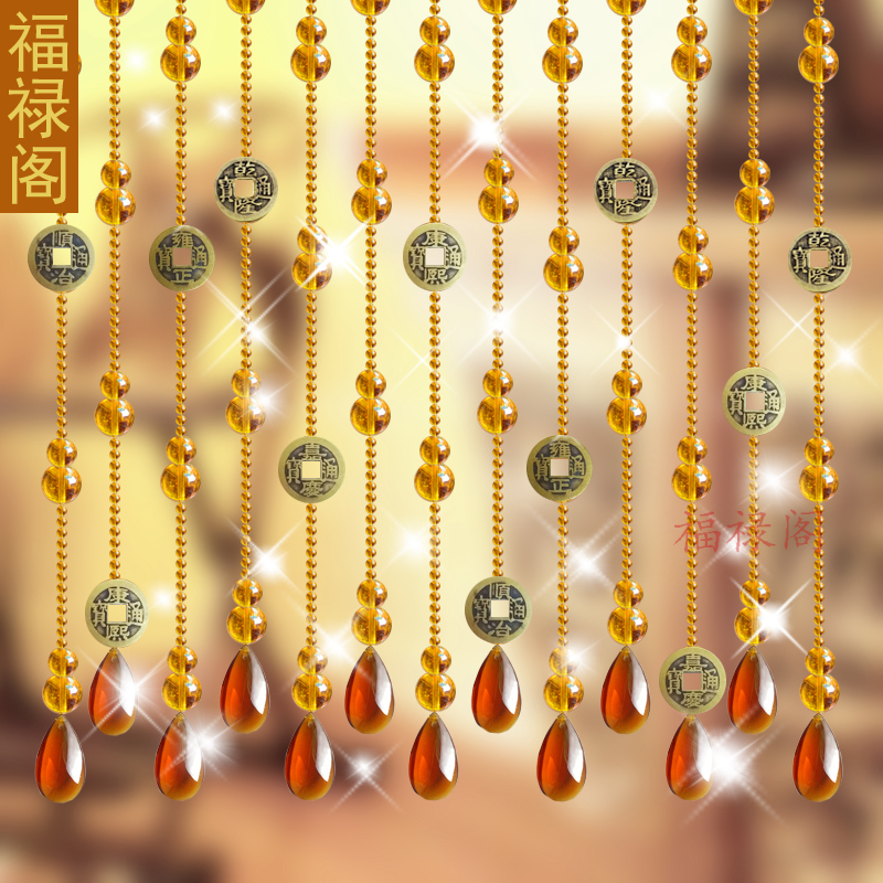 21根:1.76米高民族風復古隔斷客廳臥室廁所衛生間五帝銅錢風水葫蘆水晶珠簾門簾