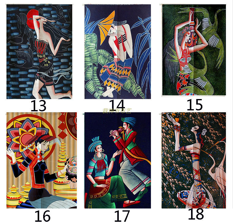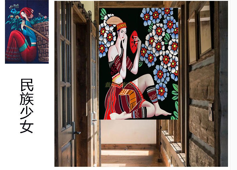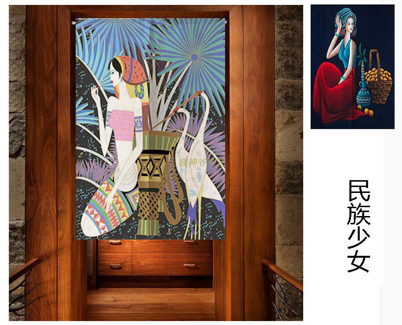 1----------6120厘米*160厘米定制棉麻門簾復古民族風少女蠟染畫創意手繪裝飾掛簾飯館廣告簾