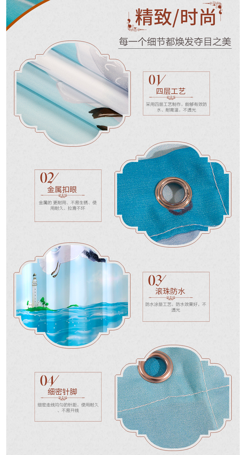 180寬*180高+環海鷗加厚滌綸浴簾布衛生間浴室隔斷簾窗簾布遮擋簾沐浴簾