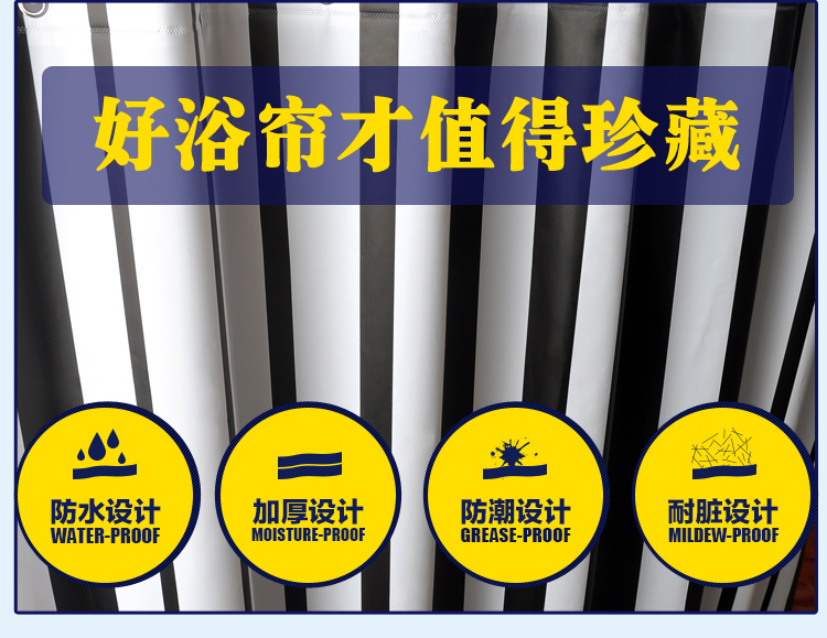 180寬*180高+掛環酒店洗澡間浴室浴簾衛生間門簾掛簾保暖隔斷簾子條紋拉簾