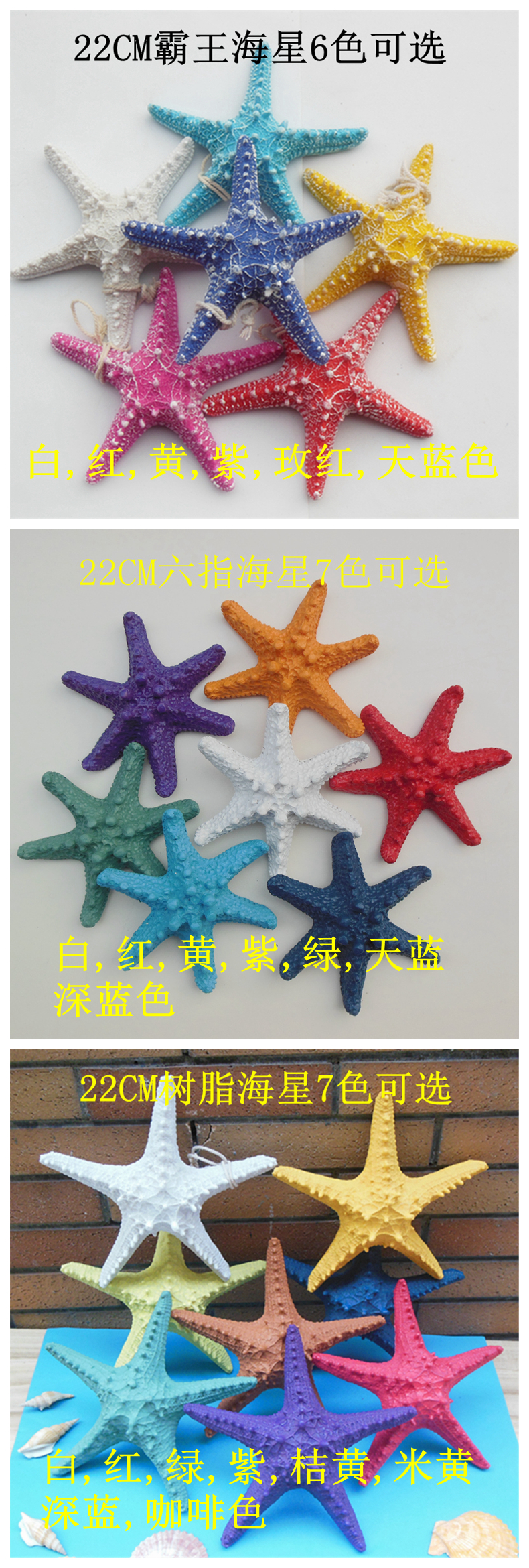【溫馨提示】此款海星寶貝均不含掛繩,需要的請拍下時留言需要麻繩只要有備注,我們時都會送的,沒有留言的不送麻繩哦此款寶貝都是1個的價,如果不能選顏色,拍下備注就可以了,沒有備注顏色的,我們時按拍下的個數隨機并均分顏色的
