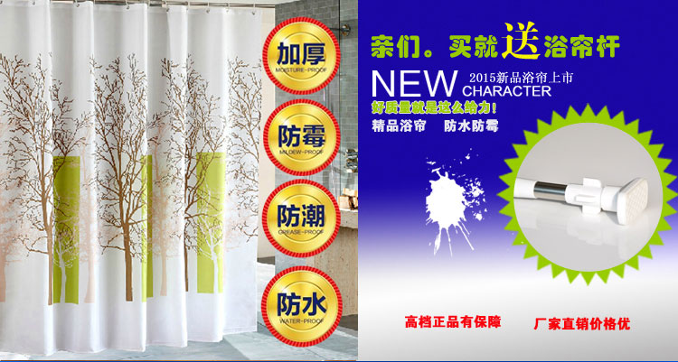 120寬*200高+1.2桿+環加厚浴簾伸縮桿配環套裝浴室簾不透保暖掛簾洗澡隔斷簾子