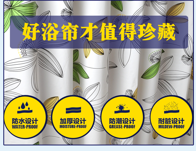 120寬*180高+環洗澡間不透浴簾peva防霉保暖掛簾浴室門窗簾隔斷遮擋簾子