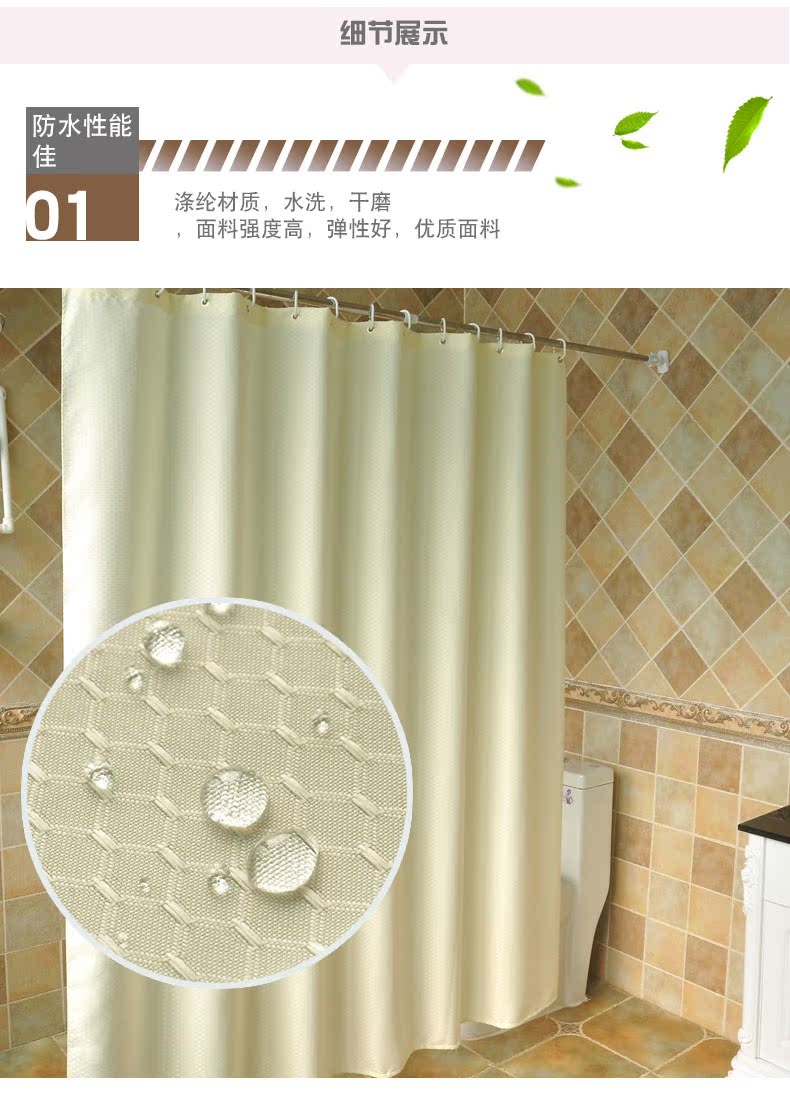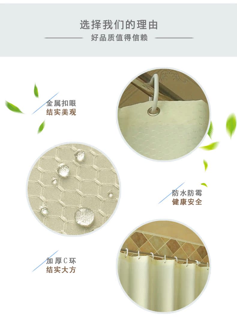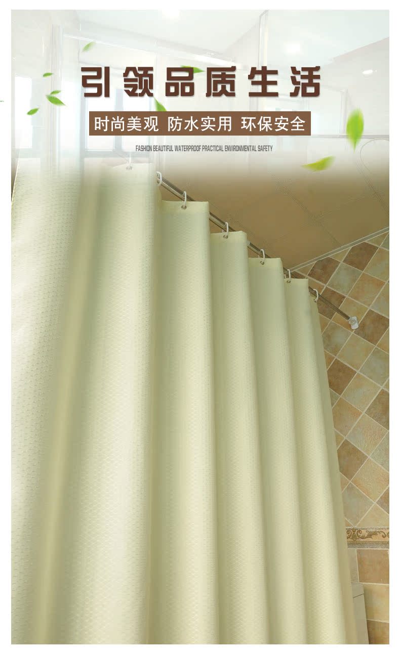 120寬*180高+環加厚滌綸浴簾布套裝窗簾布浴室衛生間防霉免打孔隔斷簾掛簾