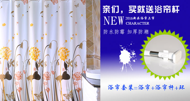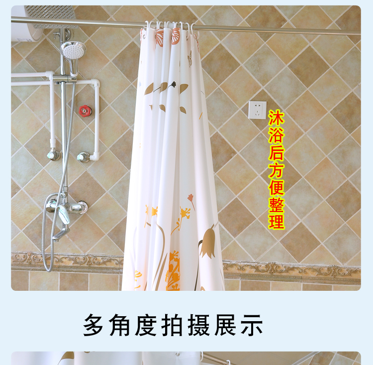120寬*180高+1.2桿+環高檔衛生間加厚浴簾布隔斷澡簾子窗簾掛簾沐浴簾加伸縮桿套裝