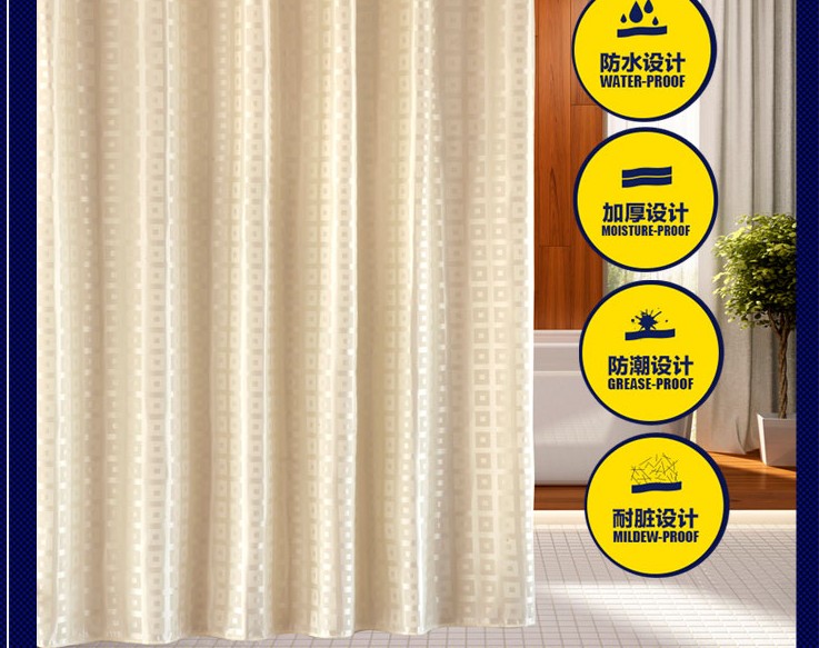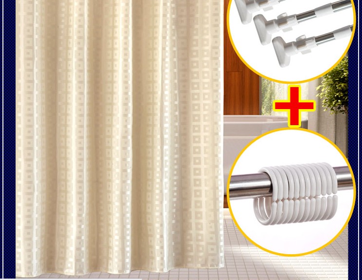 120寬*180高+1.2桿+環歐式酒店風格簾子浴室隔斷遮擋簾 浴簾加伸縮浴簾桿加環套裝