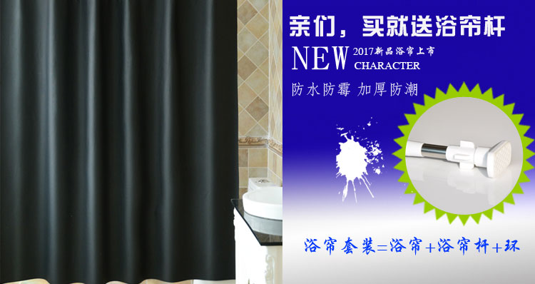 120寬*180高+1.2桿+環純黑色浴簾淋浴遮光不透明隔斷簾子夏天遮陽隔熱窗簾子