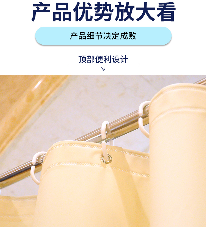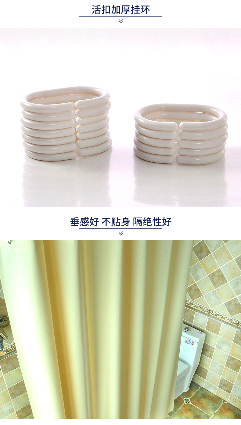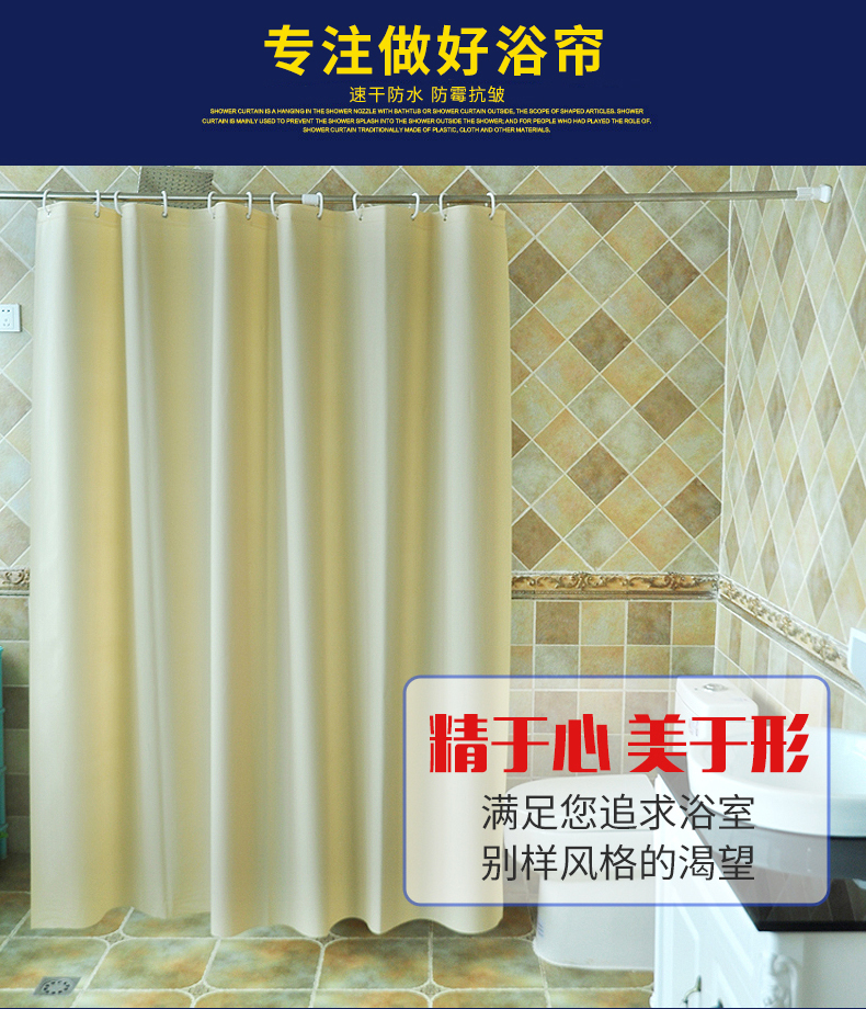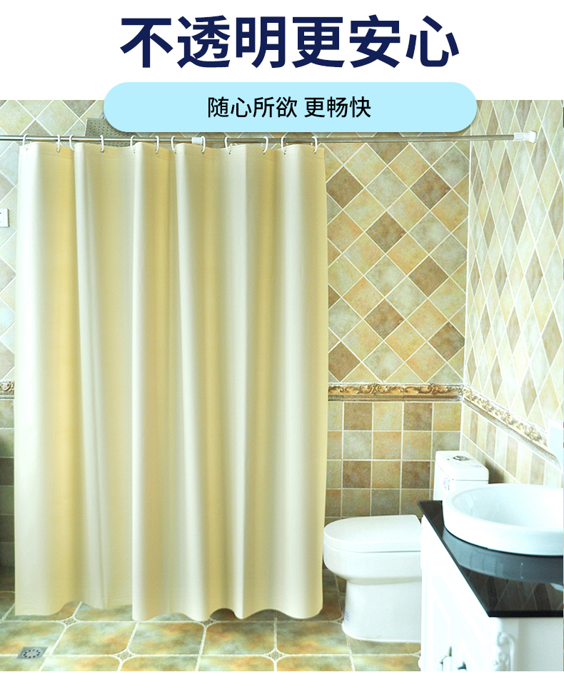 120寬*180高+1.2桿+環浴室簾純黃色浴簾布洗澡間保暖簾子衛生間窗簾隔斷遮光掛簾子