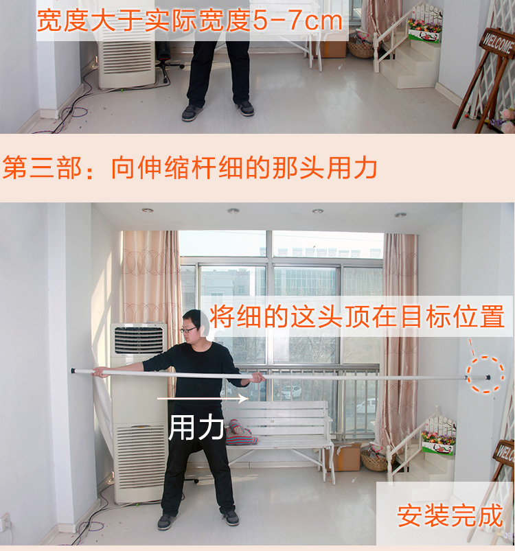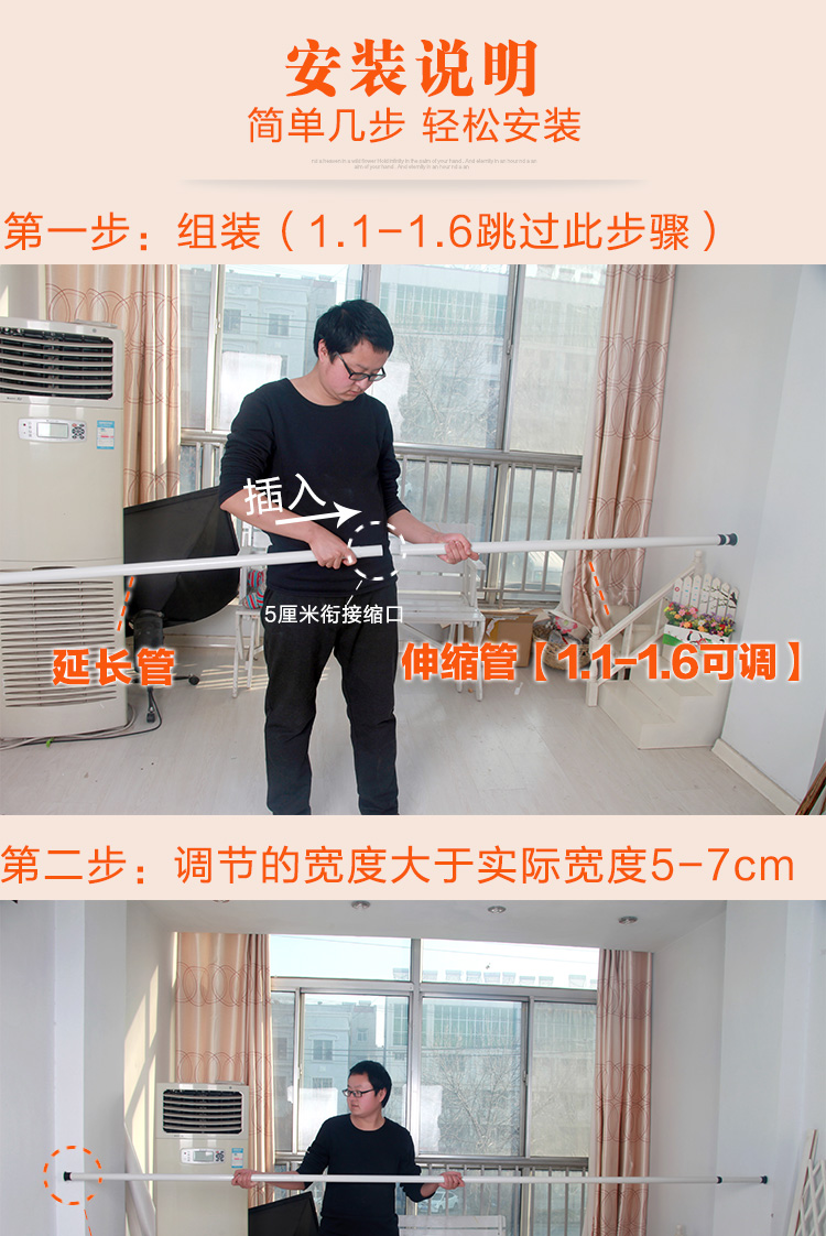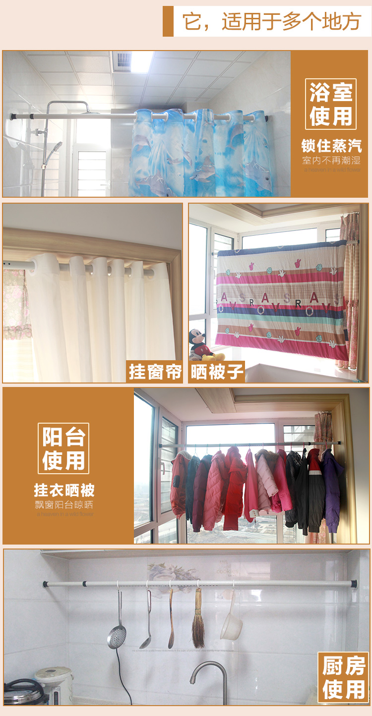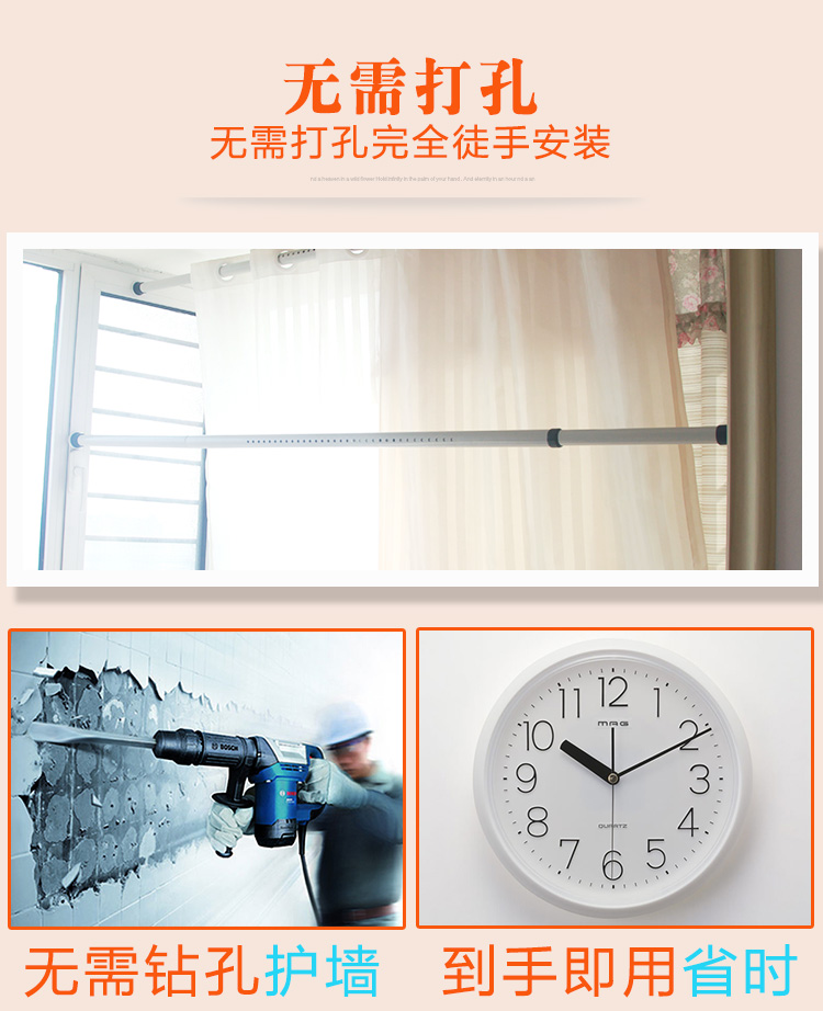 1.1 1.6米(32直徑)免打孔伸縮桿浴簾桿直桿型門簾桿子浴室窗簾桿衛生間晾衣桿支撐桿