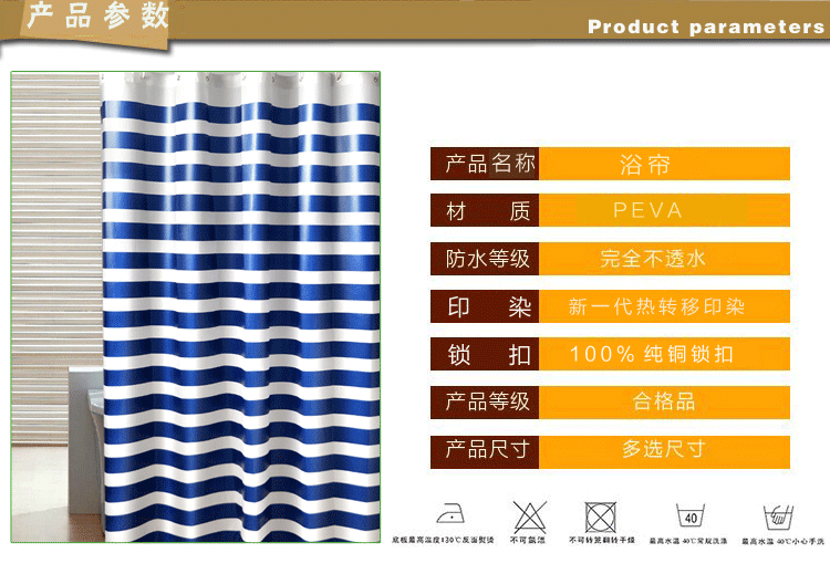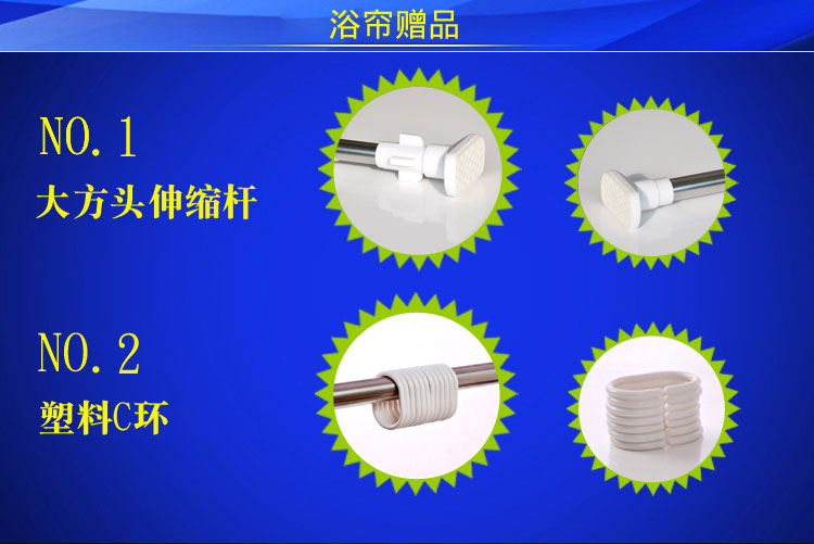 120寬*180高+1.2桿+環加厚條紋浴室簾防霉遮擋簾門簾拉簾浴簾+浴簾桿+掛簾套裝