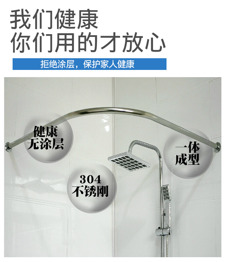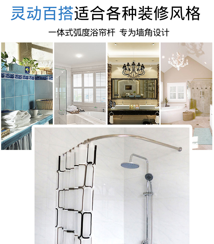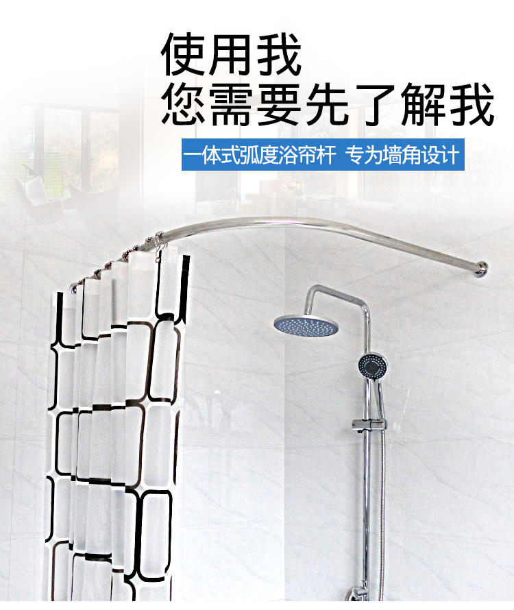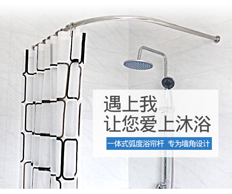 100厘米*120厘米+浴簾+環加厚304不銹鋼弧形浴簾桿L型浴室浴簾架U型弧形桿可定做送簾送環