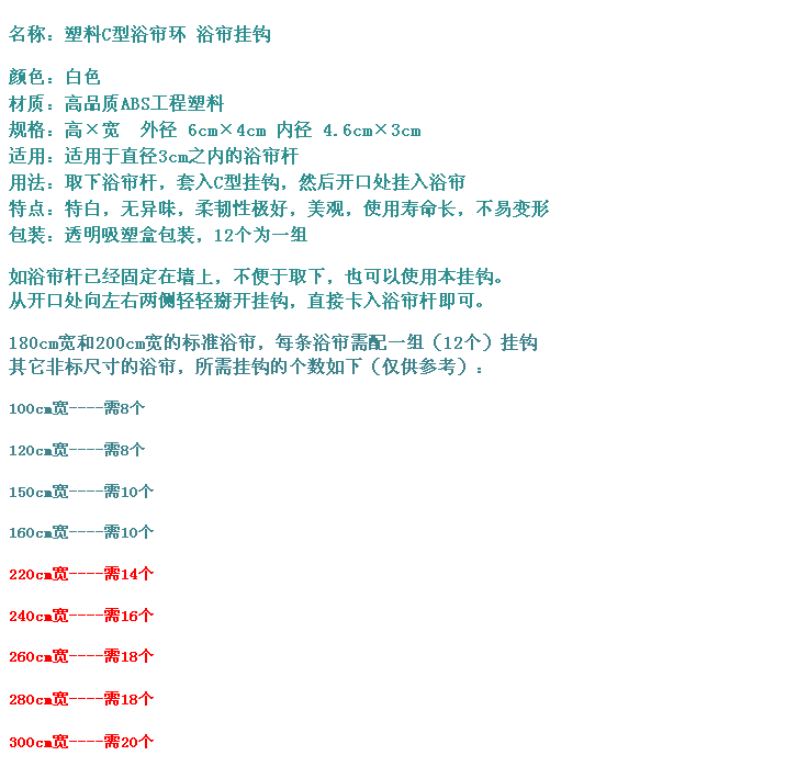 100裝【天天特價】塑料C環 浴簾配件 掛環浴簾門簾窗簾掛鉤 塑料浴簾環
