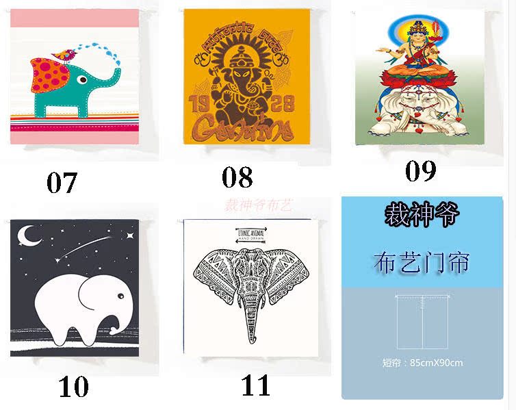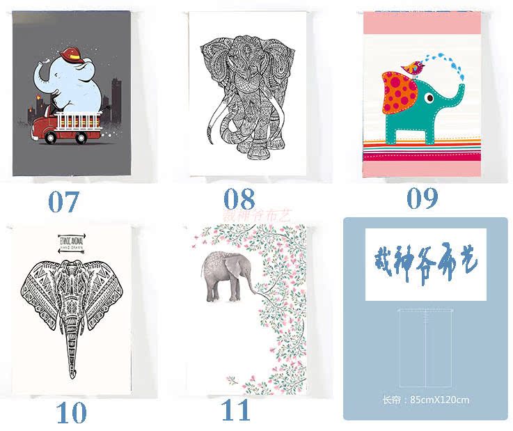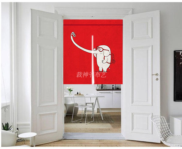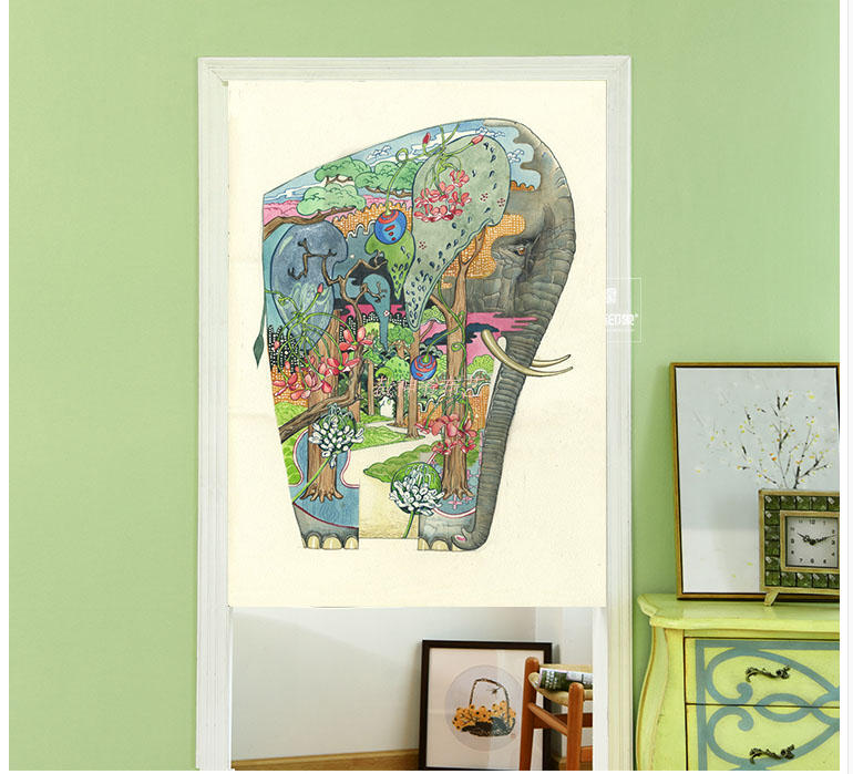 0160厘米*120厘米定制北歐大象棉布藝門簾窗兒童書房隔斷玄關風水半簾臥室裝飾掛簾