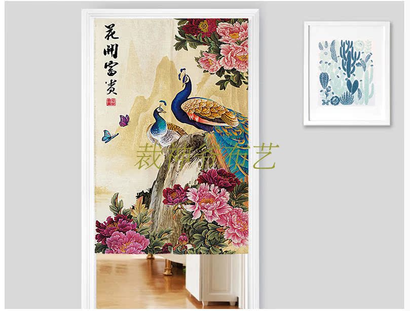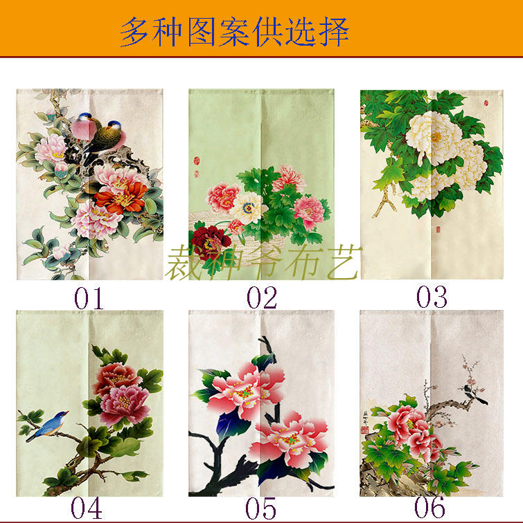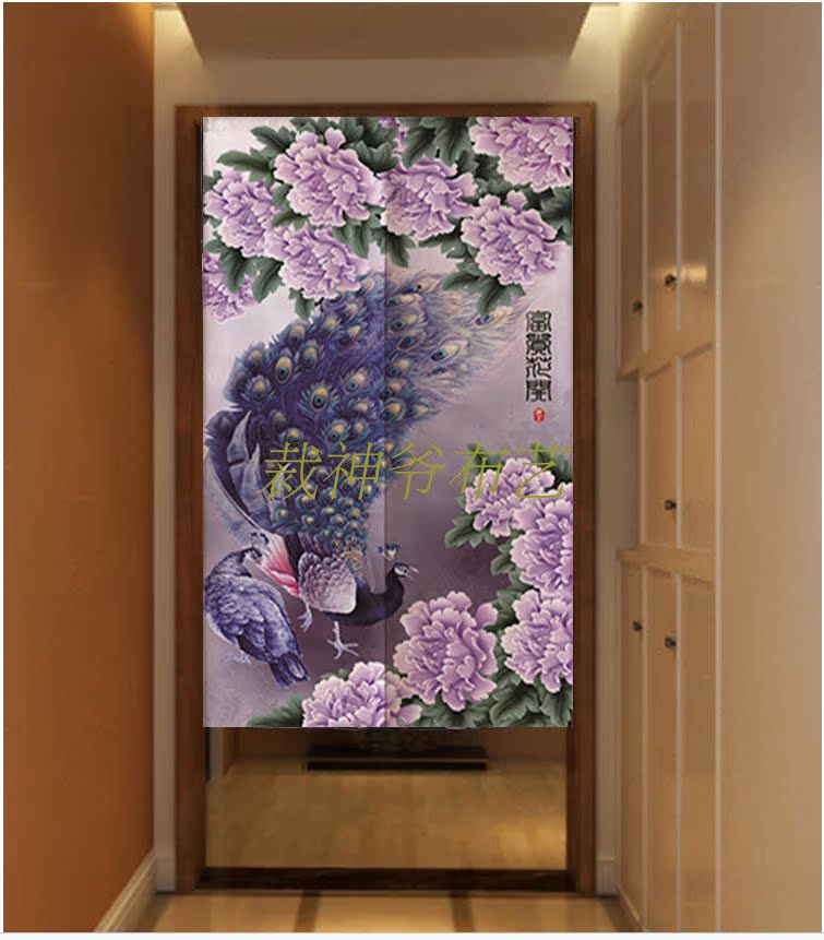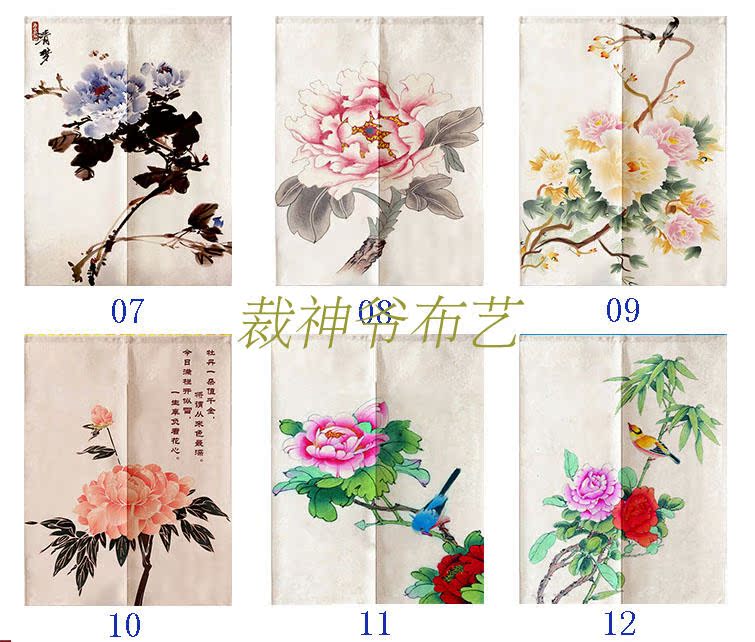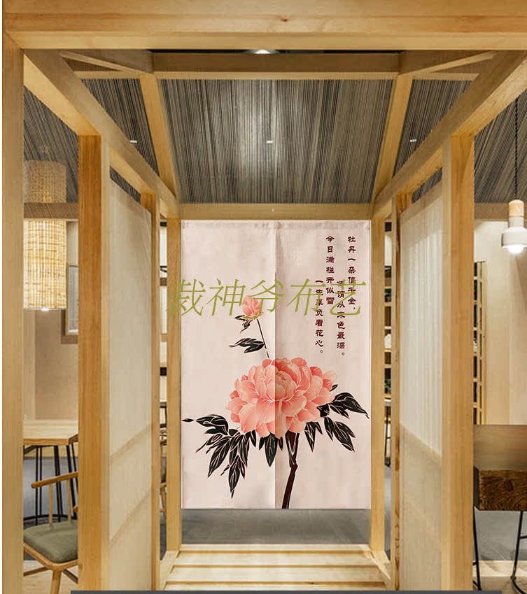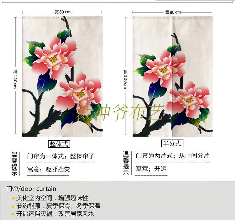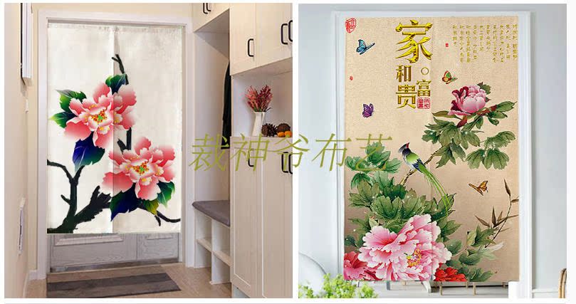 0140厘米*100厘米可定制富貴牡丹中式布藝棉麻臥室裝飾簾加厚客廳風水遮光窗簾門簾