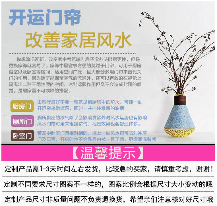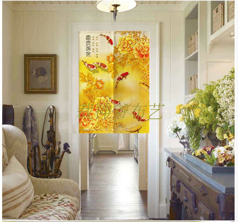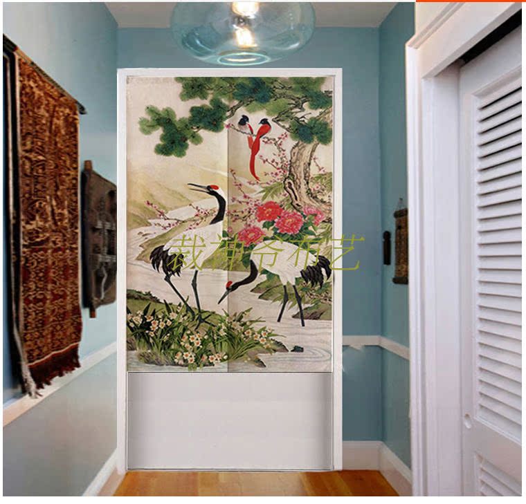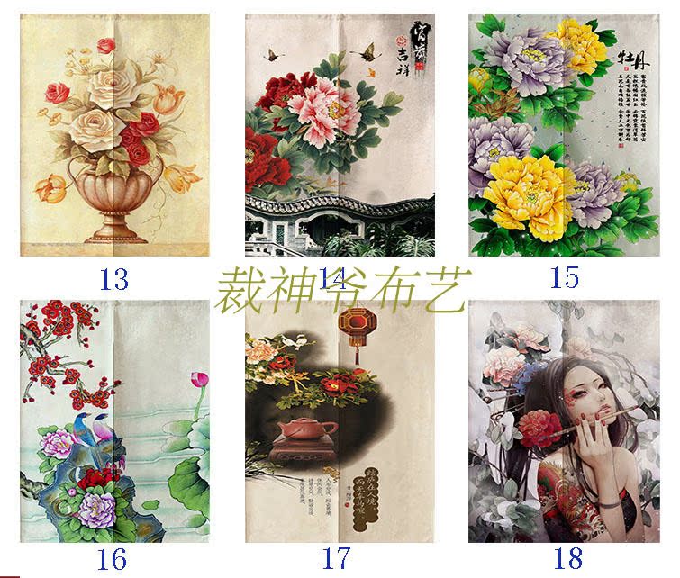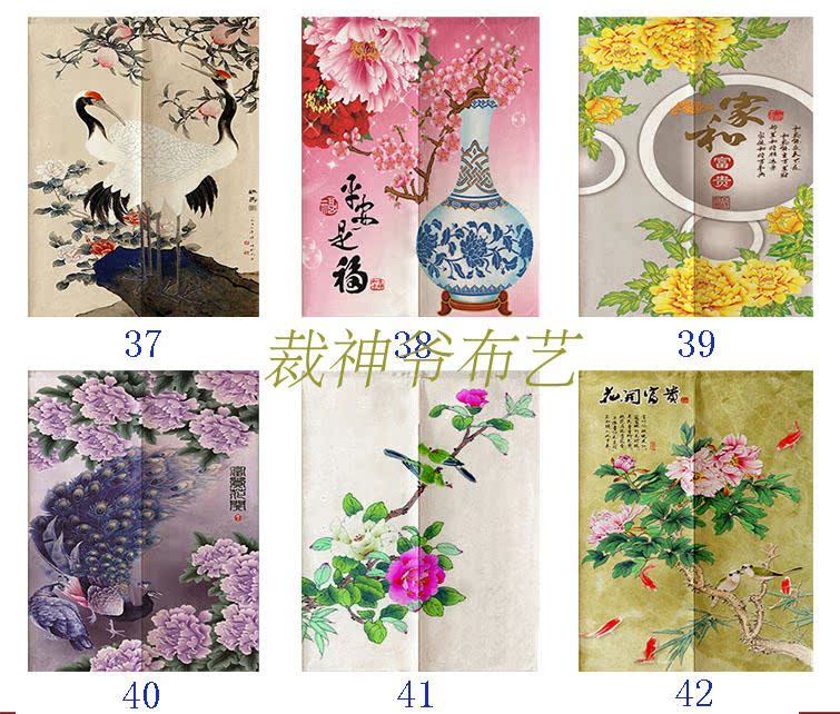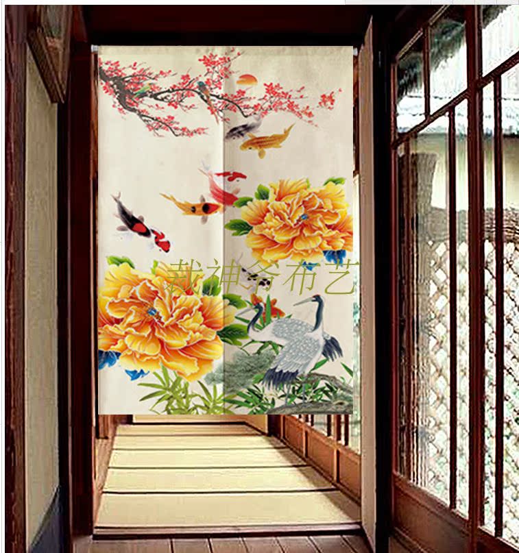 0140厘米*100厘米可定制富貴牡丹中式布藝棉麻臥室裝飾簾加厚客廳風水遮光窗簾門簾
