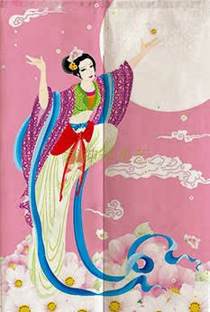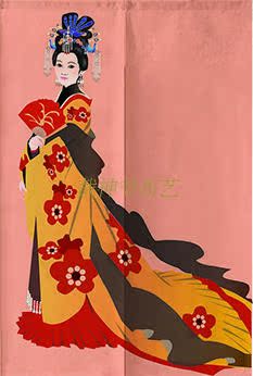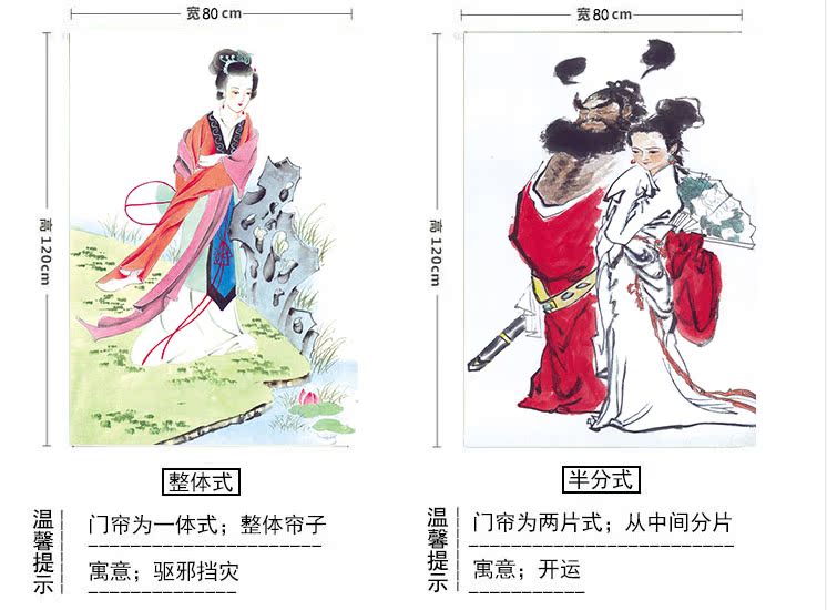 01140厘米*150厘米定制古代人物門簾尺寸圖案廚房臥室試衣間隔斷簾棉麻布藝半簾