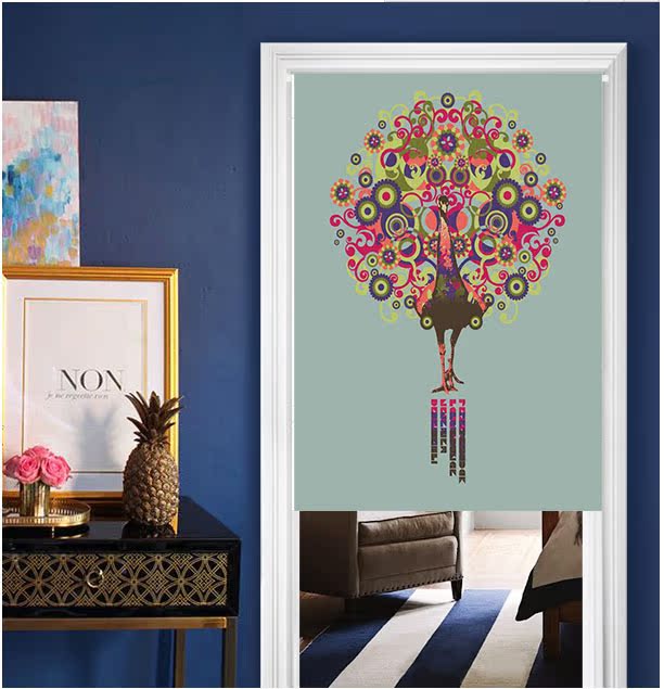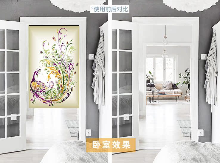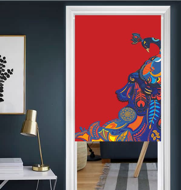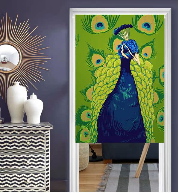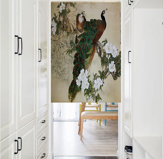 00140厘米140厘米定制中式孔雀門簾書房臥室窗簾隔斷布藝門簾風水半簾玄關裝飾掛簾