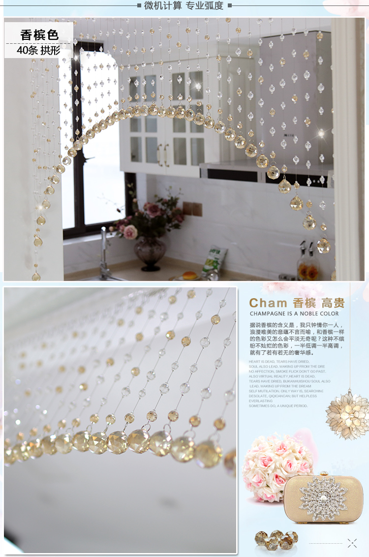 【說明】拍下請備注寬度和顏色簾通拱形門簾珠簾水晶隔斷客廳玄關衛生間半掛吊簾子散珠成品