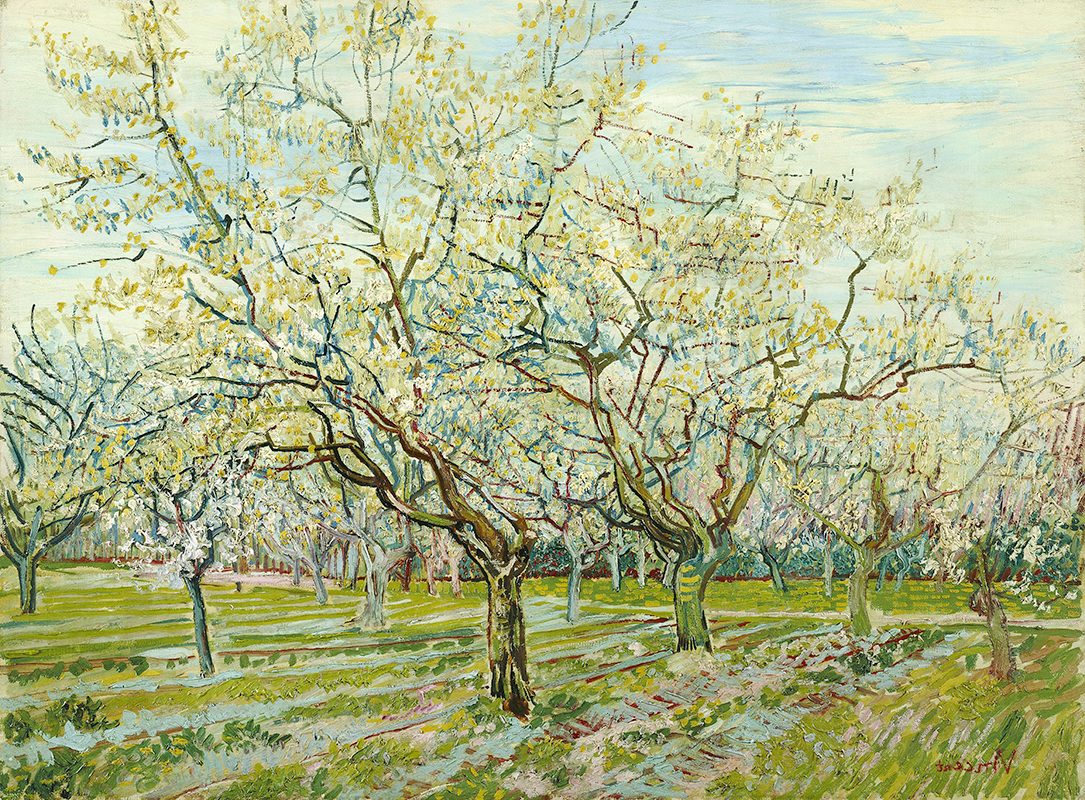A啞光棉布獨立48*36果園中的李子樹 梵高 歐式風景仿真油畫玄關畫客廳裝飾畫芯016