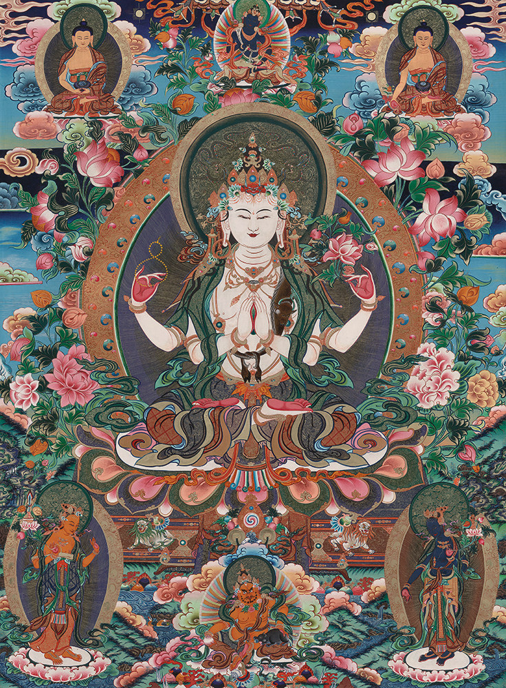 A啞光棉布獨立43.5*60YOYO印記 中式 藏式 唐卡 格桑冷智 四臂觀音 裝飾畫 畫芯