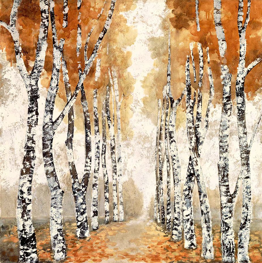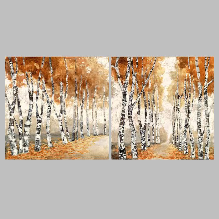 A啞光棉布獨立40*40YOYO印記 植物風景樹林客廳沙發背景墻 書房 玄關 裝飾畫 畫芯026
