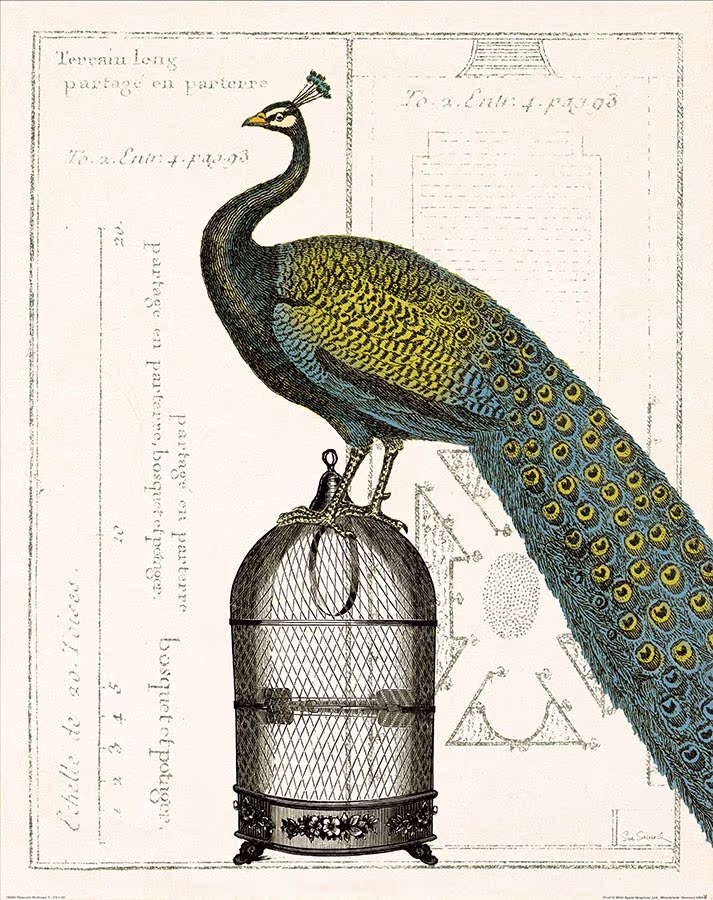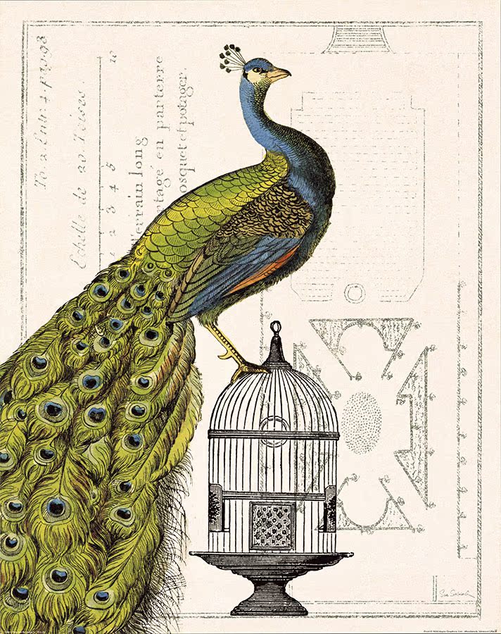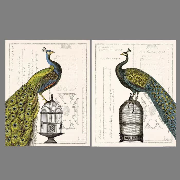 A啞光棉布獨立32*40YOYO印記 美式裝飾畫客廳沙發壁畫 古典風格孔雀畫 玄關 畫芯026