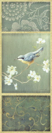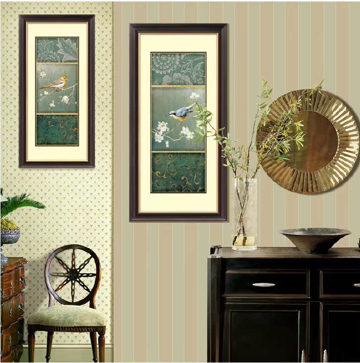 A啞光棉布獨立30*75美式歐式后現代客廳書房 高檔古典裝飾畫 畫芯 鳥語花香