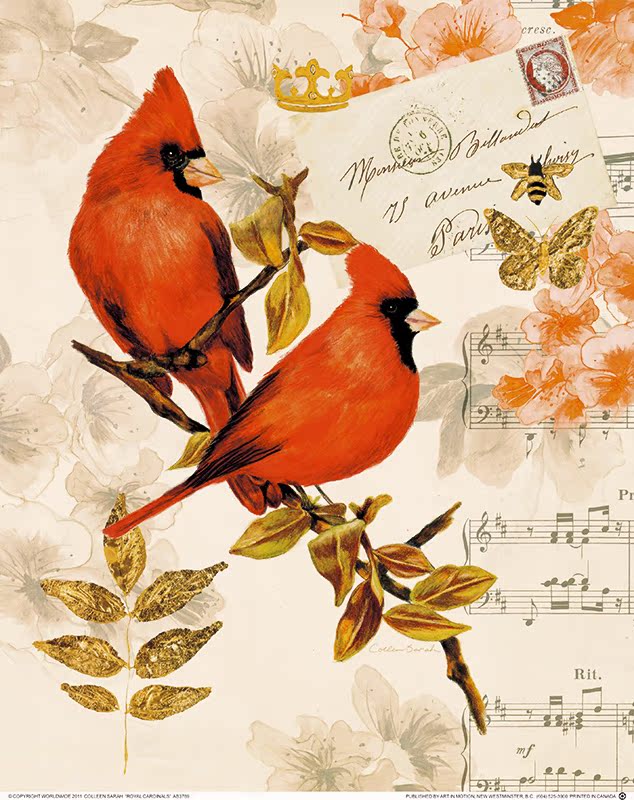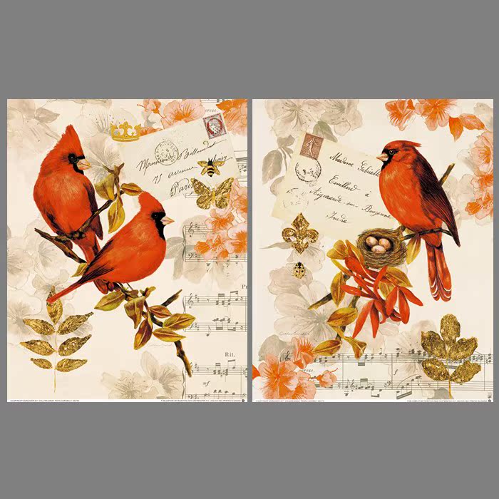A啞光棉布獨立24*30YOYO印記花鳥 美式鄉村掛畫田園現代客廳畫書房裝飾畫 畫芯016