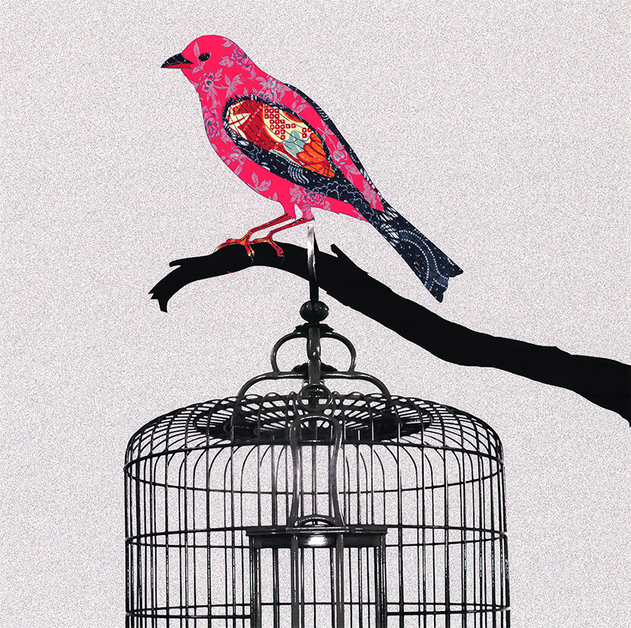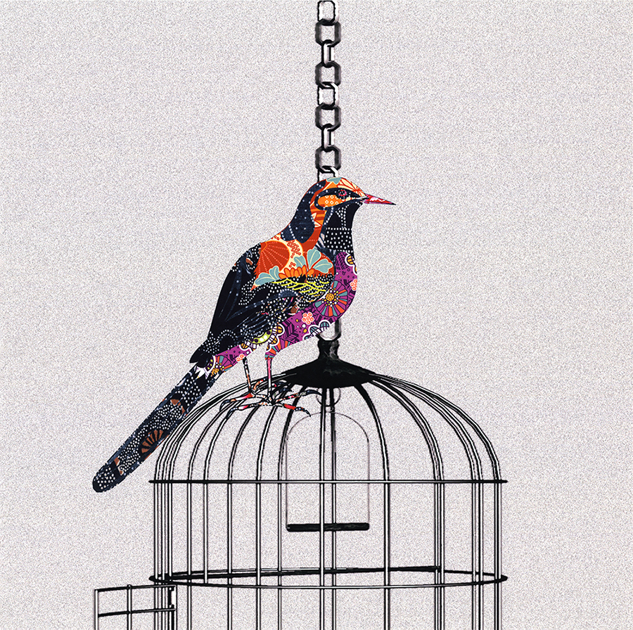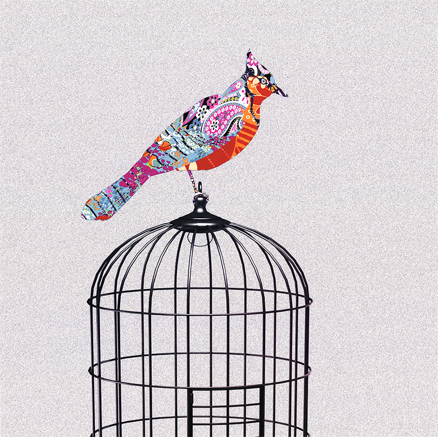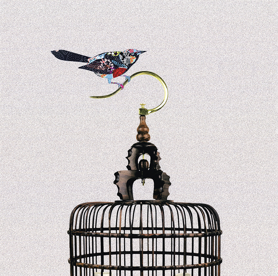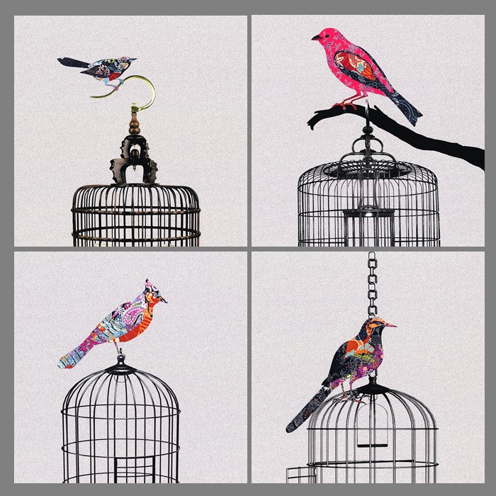 A啞光棉布獨立30*30YOYO印記 現代中式 樣板房 鳥 鳥籠 客廳 書房 裝飾畫 畫芯024