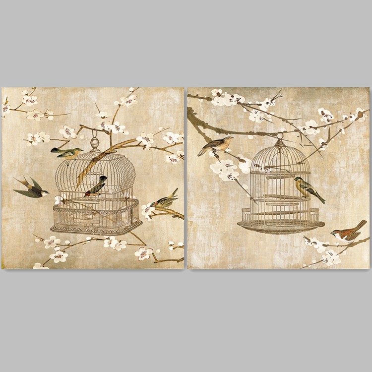 A啞光棉布獨立30*30YOYO印記 花卉鳥籠 民族風 客廳 臥室 過道 裝飾畫 畫芯021