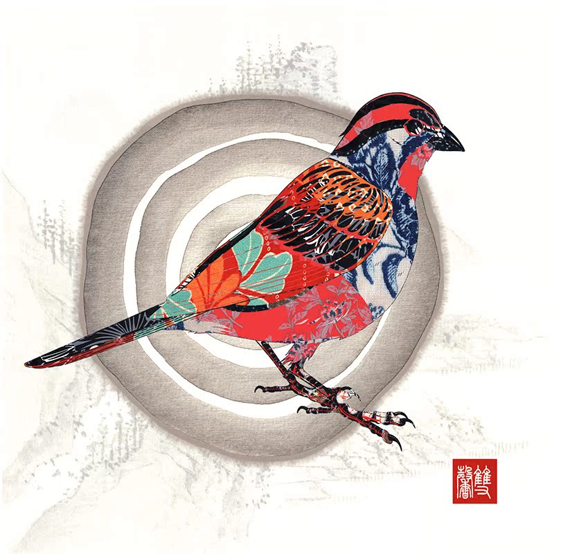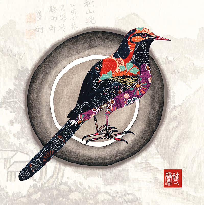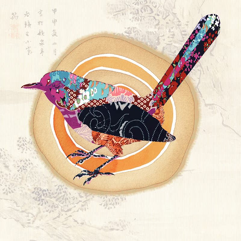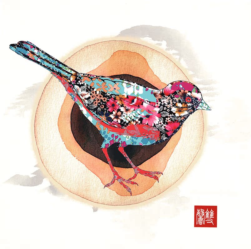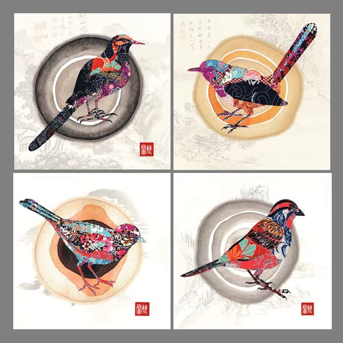 A啞光棉布獨立30*30YOYO 印記 新中式 客廳 彩繪鳥 裝飾畫 畫芯028