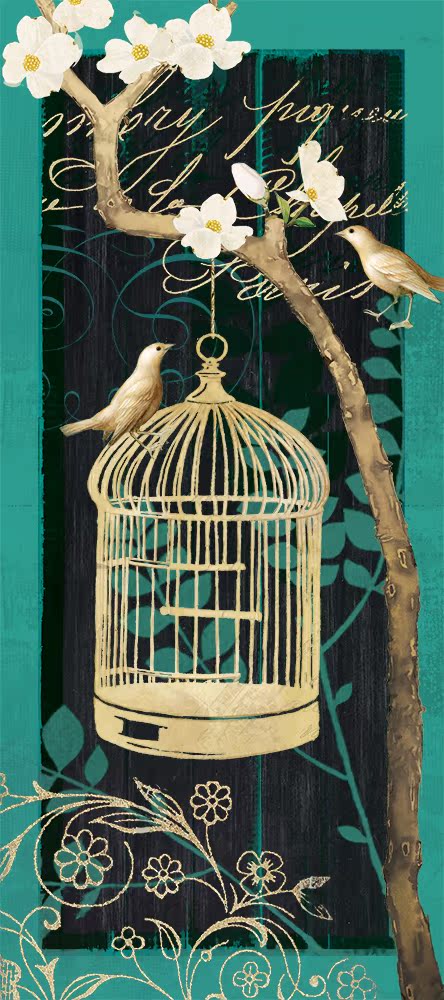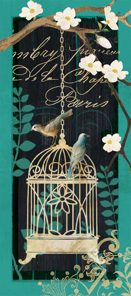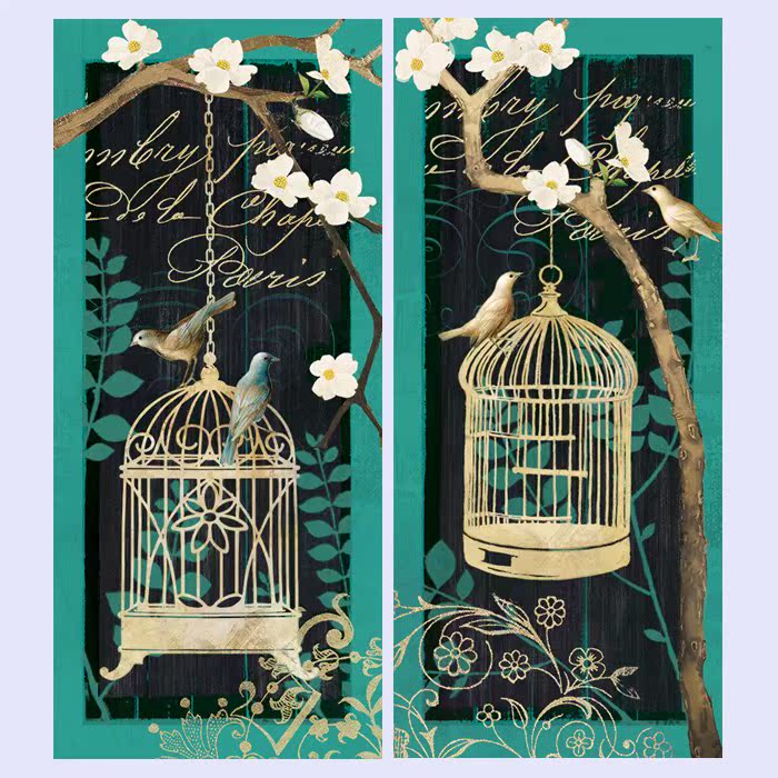 A啞光棉布獨立28*63YOYO印記 新中式 花鳥 鳥籠 客廳 玄關 過道裝飾畫 畫芯024