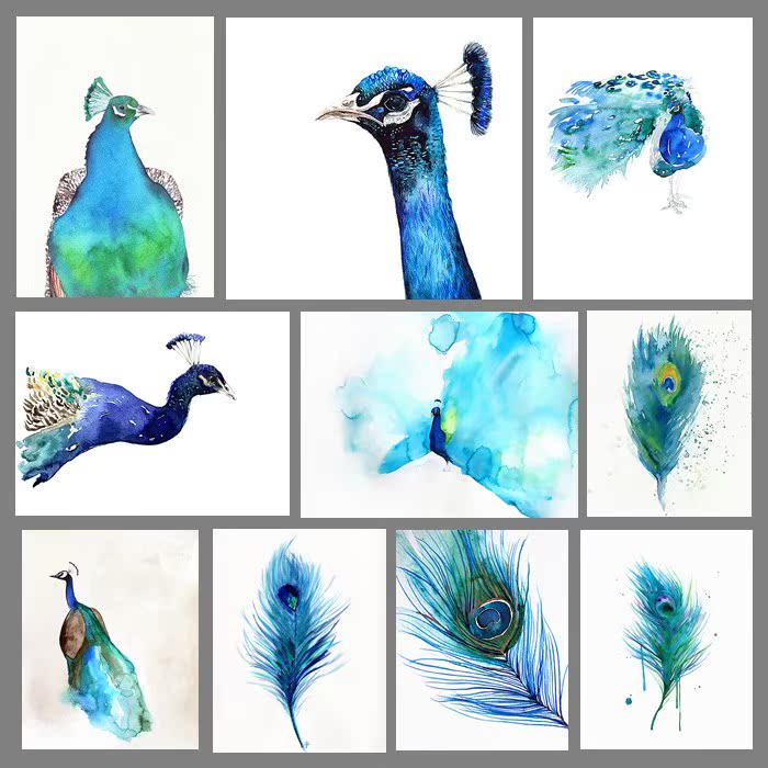 A啞光棉布獨立20*30YOYO印記 孔雀組合系列1 現代創意客廳沙發餐廳 裝飾畫畫芯 026