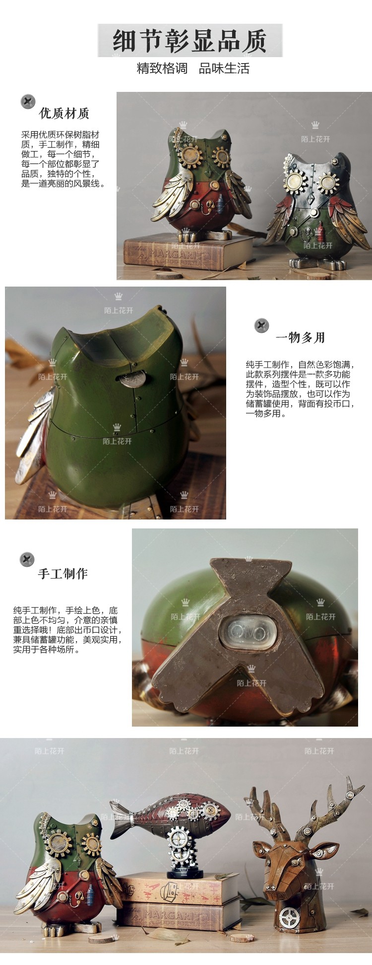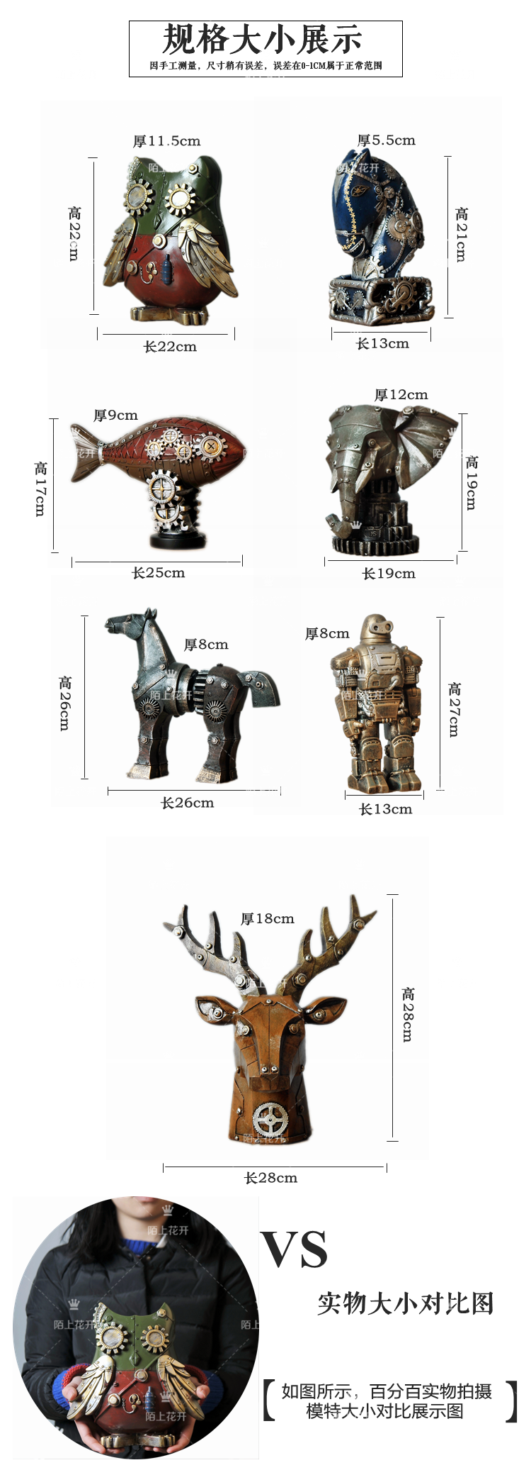 機械鹿頭-紅色復古做舊LOFT工業風擺件 家居創意機械馬酒吧咖啡廳 櫥窗軟裝飾品