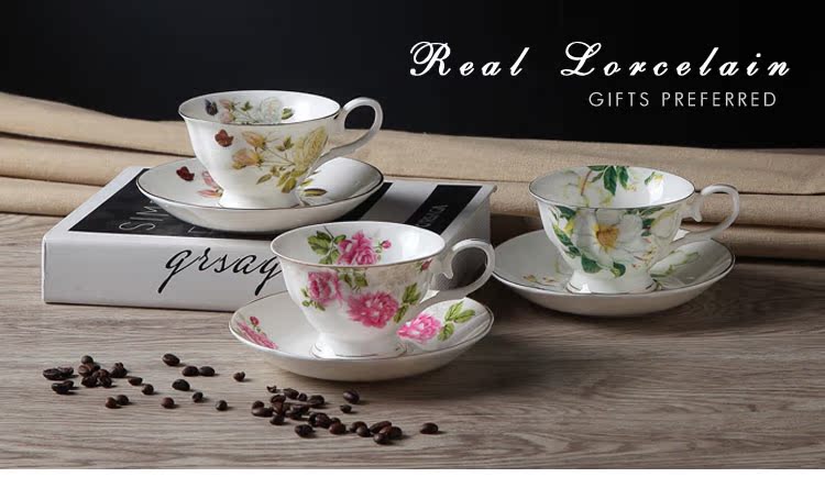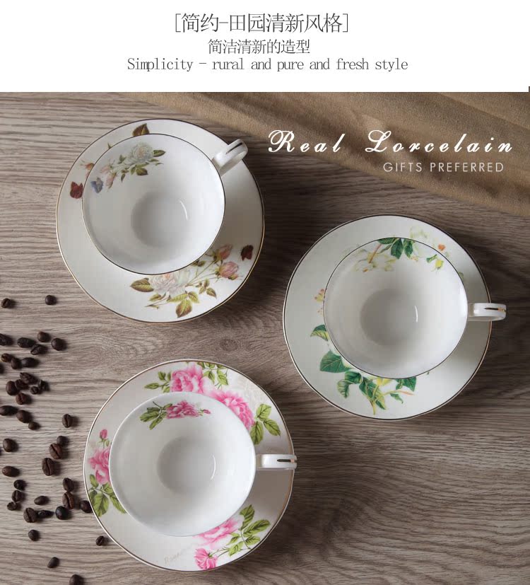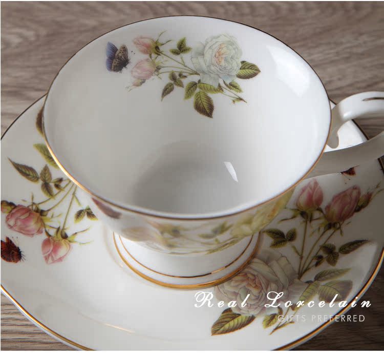 蝶花相惜-高杯(一杯一碟)創意歐式咖啡杯套裝陶瓷高檔創意咖啡杯碟勺