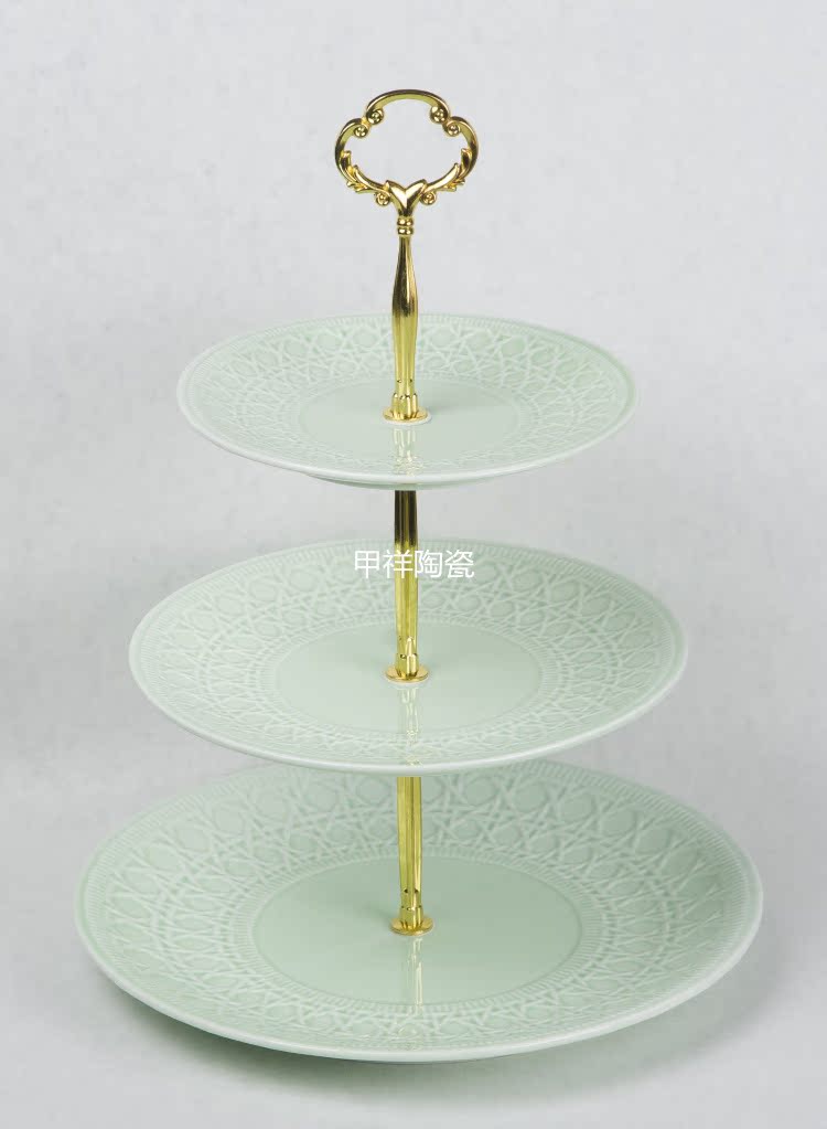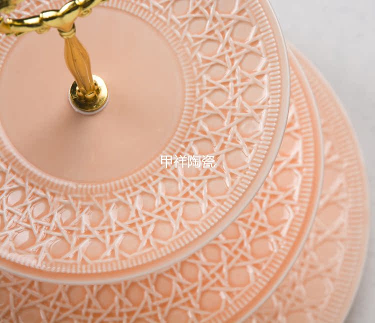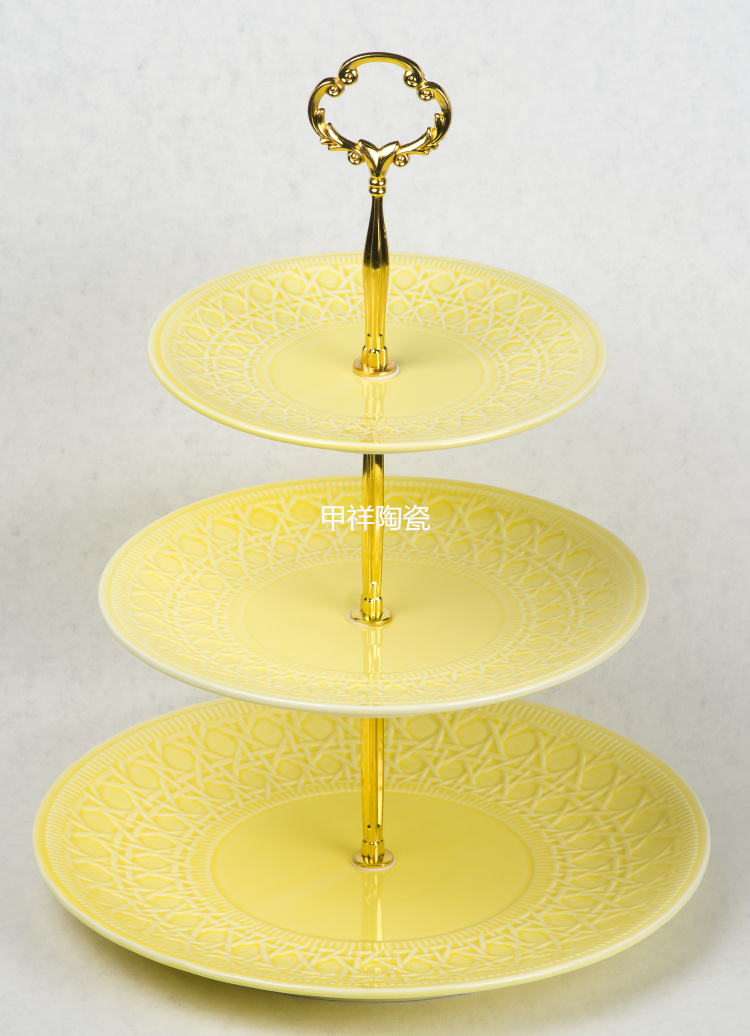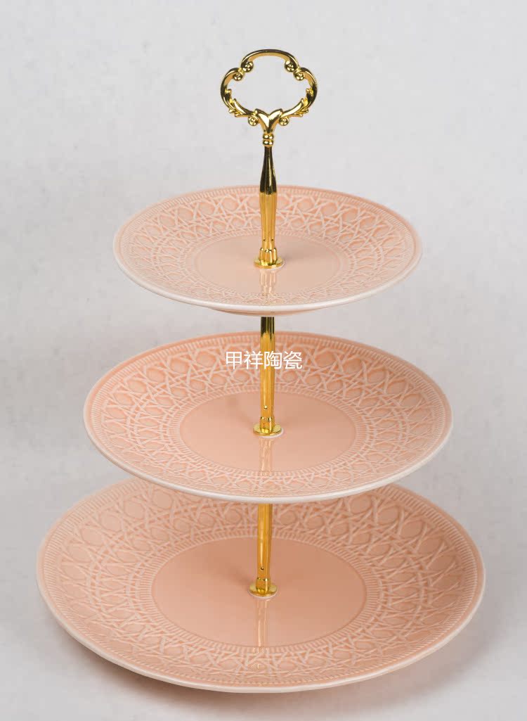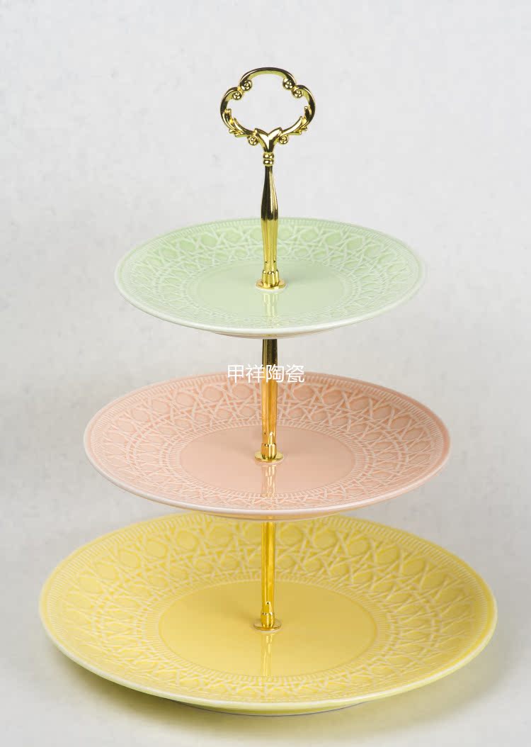 網紋圓串盤-橙糖果色甜品架三層果盤可愛料理店客廳架子餐廳下午茶陶瓷托盤酒店