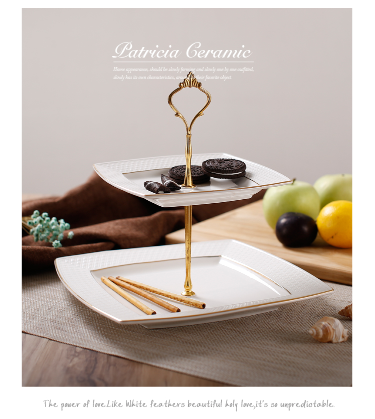 鉆點描金二層串盤歐式雙層水果盤架蛋糕架餅干蛋糕果糖盤下午茶描金陶瓷點心盤
