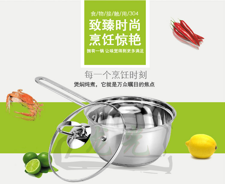 電木柄單底(送不銹鋼雙層碗)奶鍋16cm單柄小湯鍋304不銹鋼加厚復底嬰兒輔食熱小鍋電磁爐通用