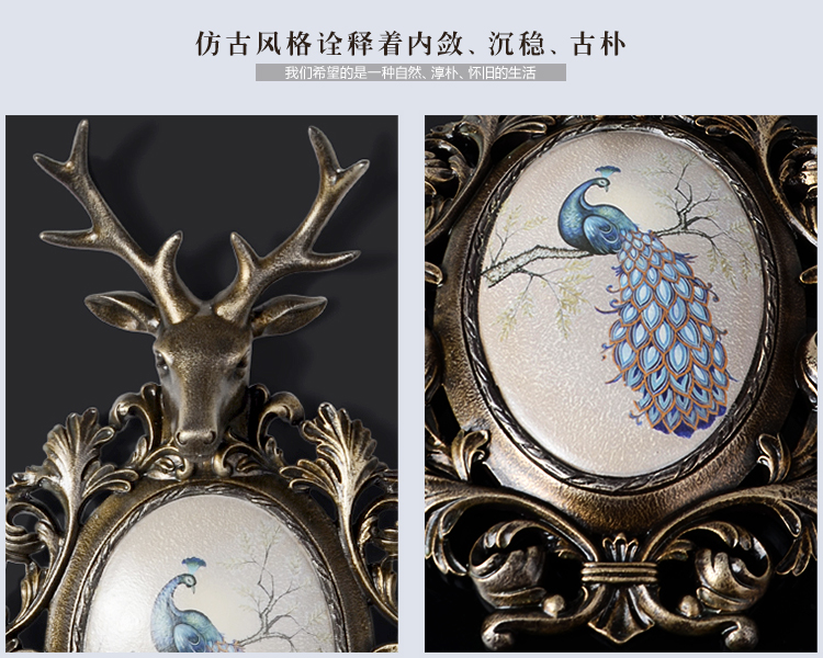 暗香系列鹿頭孔雀印花掛飾美式鄉村客廳墻上壁飾鹿頭壁掛歐式復古墻飾掛飾背景墻面家裝飾品