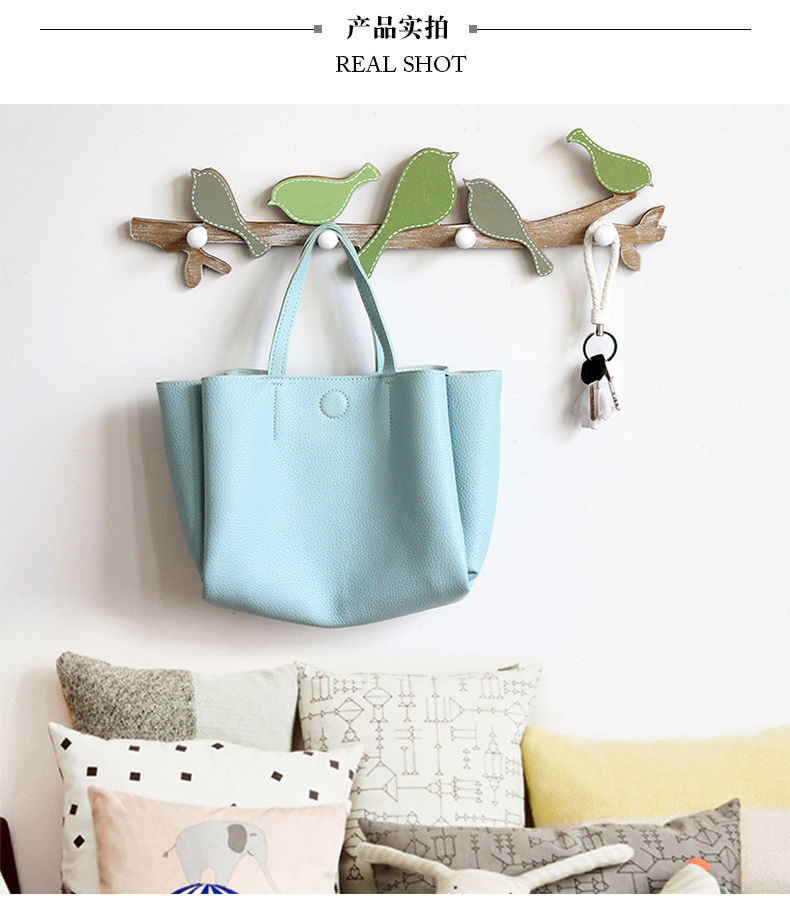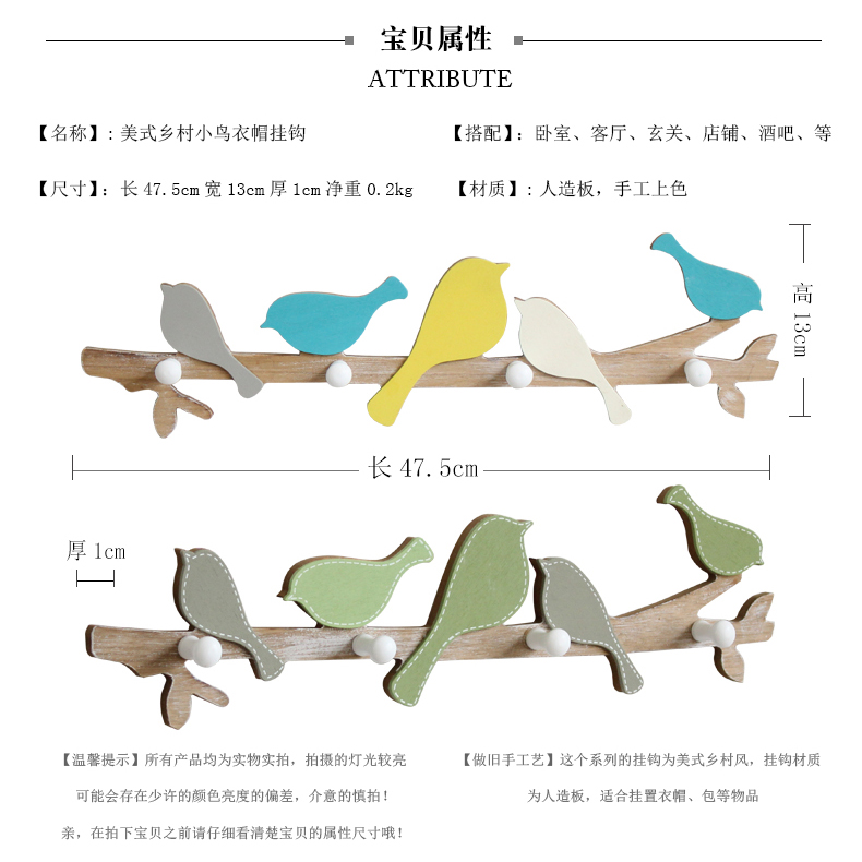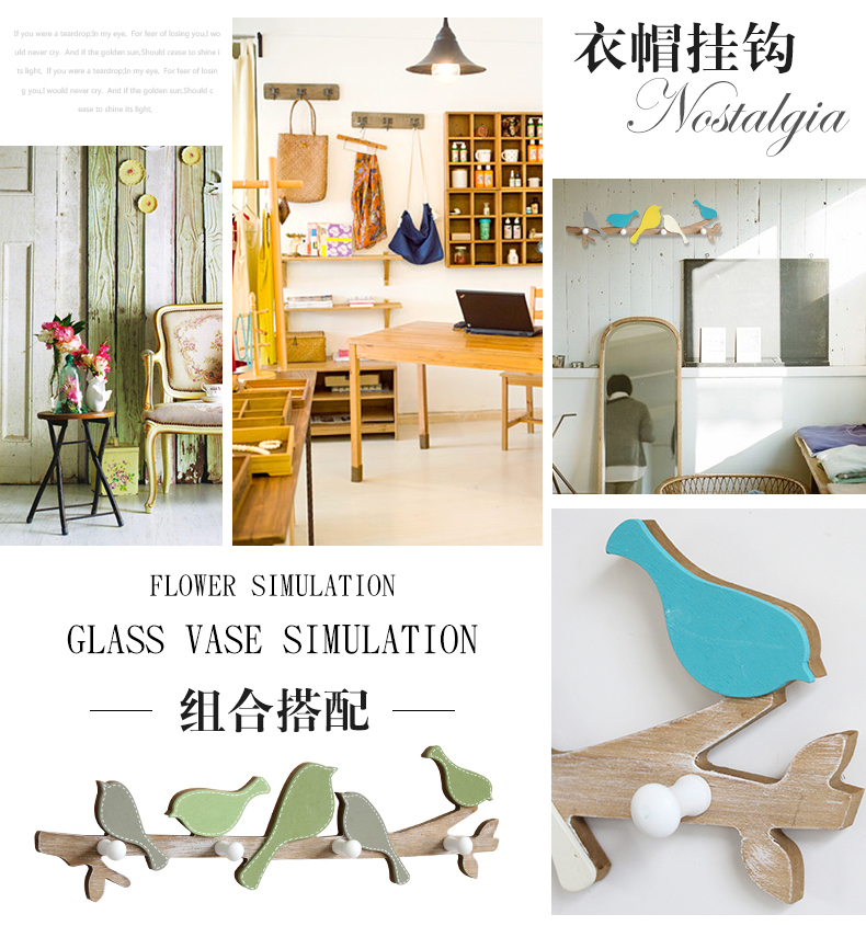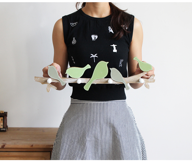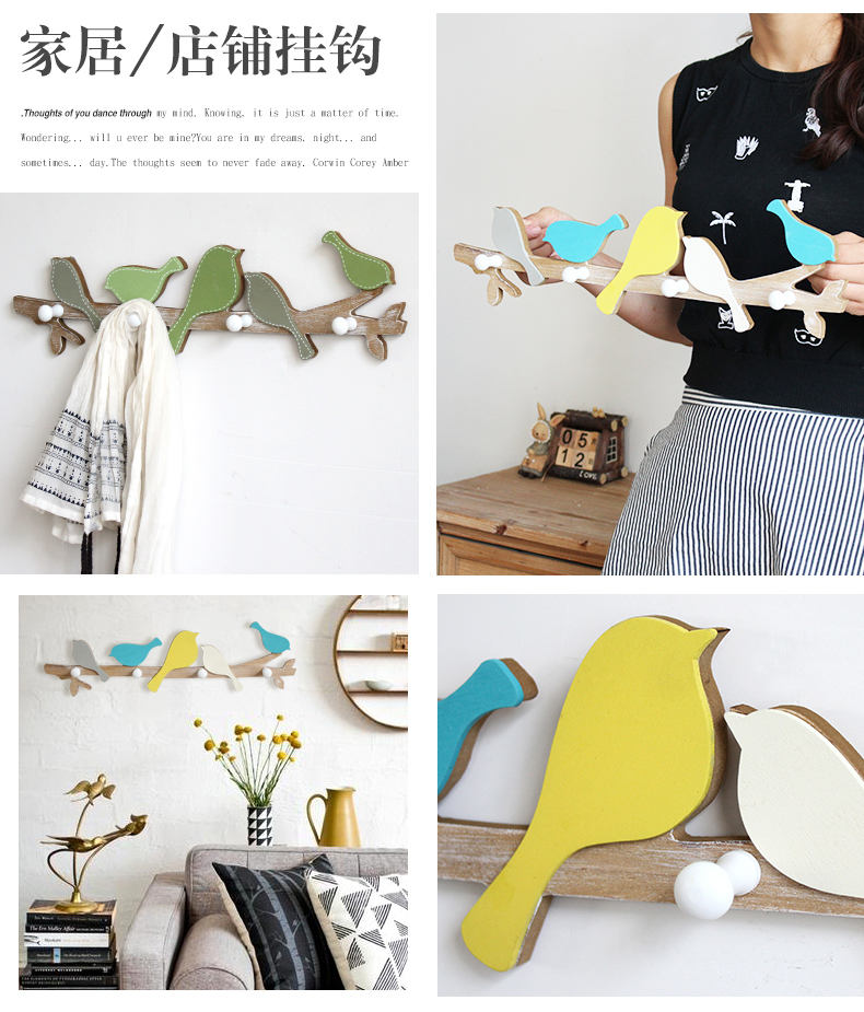 黃藍色小鳥創意實木質小鳥掛鉤兒童房臥室衣架墻面裝飾壁掛衣帽鉤玄關鑰匙架