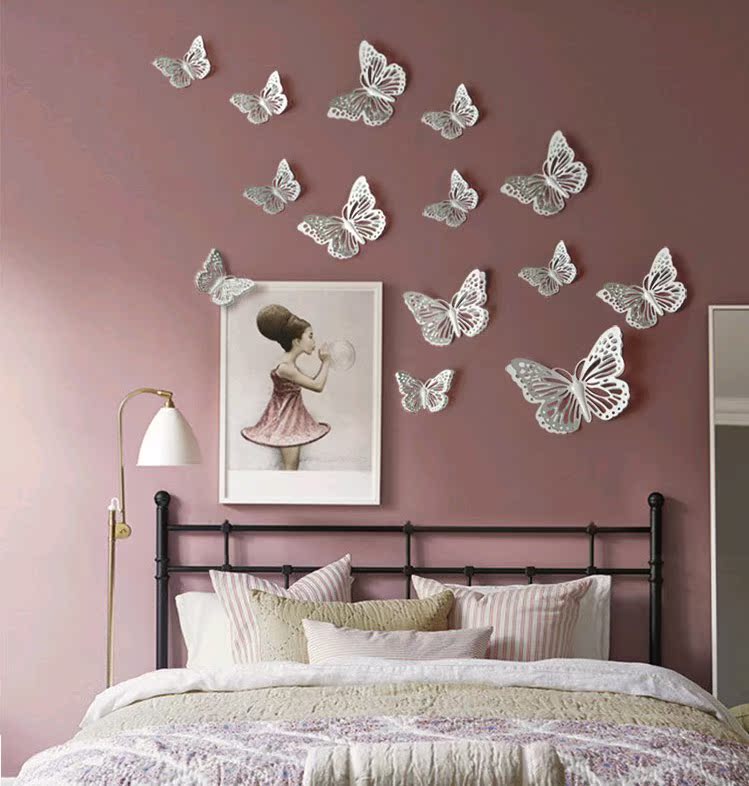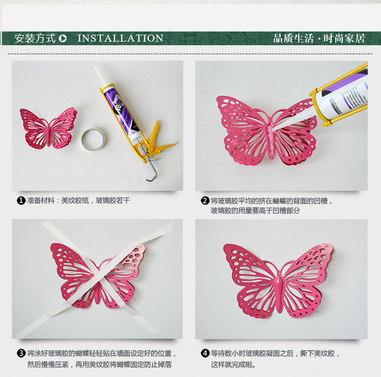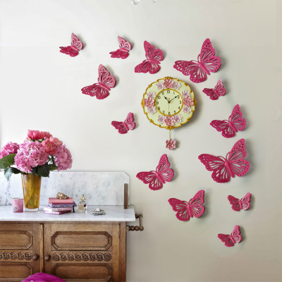 黃色套餐7小4中1大歐式田園鐵藝蝴蝶房間裝飾品墻貼美式鄉村電視背景墻壁飾壁貼壁掛