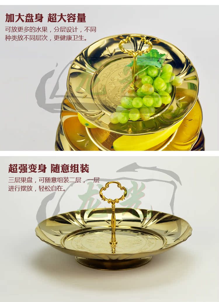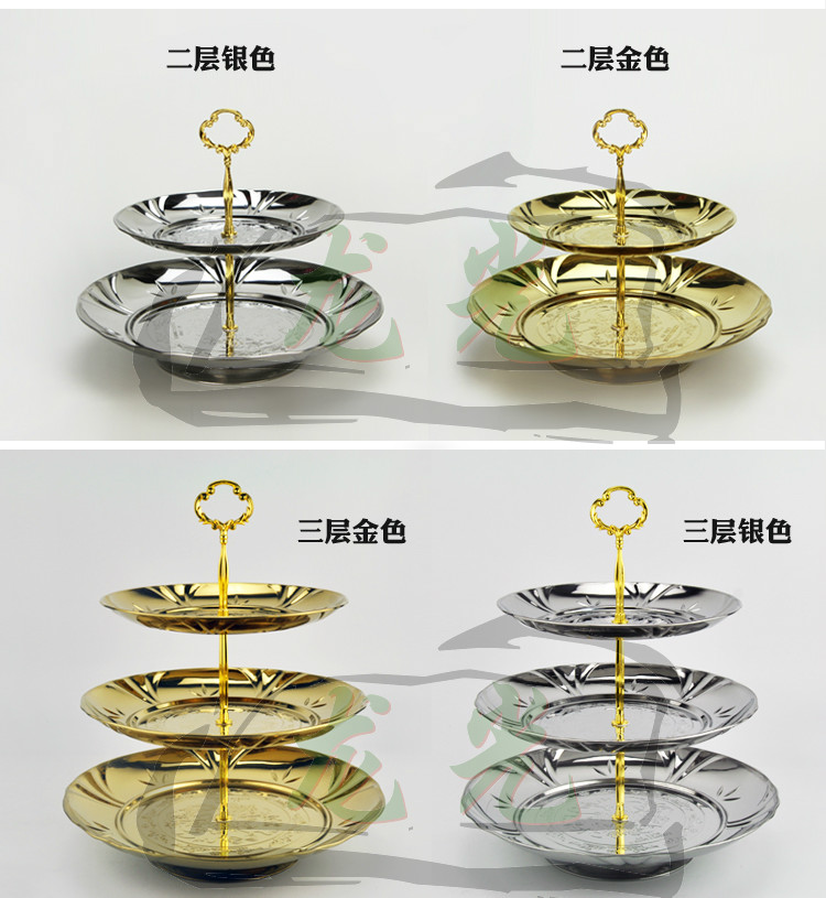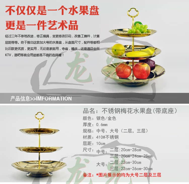 梅花盤中號:銀二層歐式創意不銹鋼水果盤/糖果盤/三層果盤/客廳雙層果籃婚慶酒吧KTV