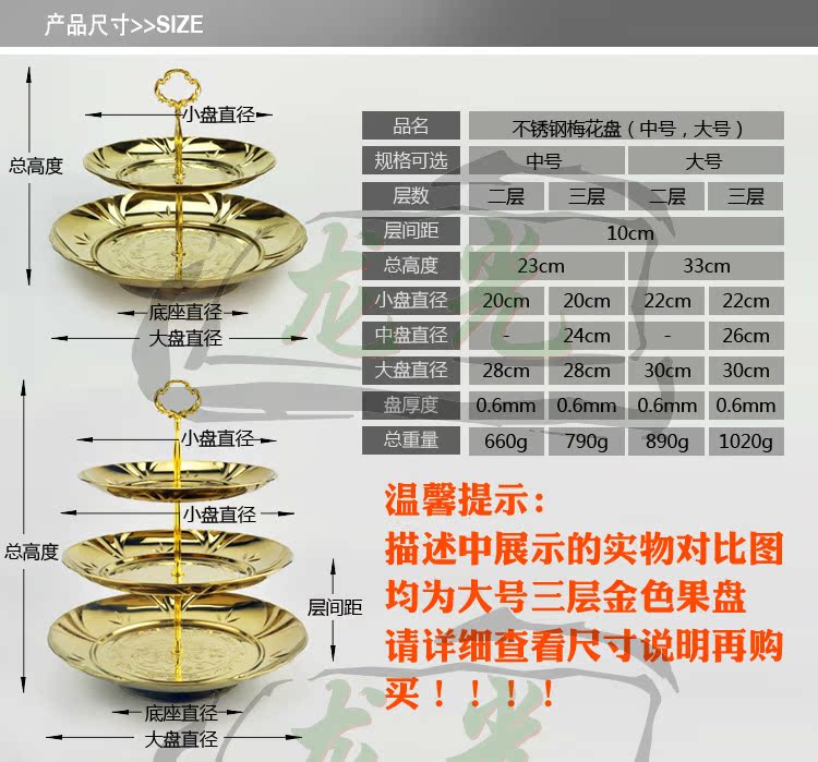 大號三層:22cm上盤直徑-26cm中盤直徑-30cm下盤直徑