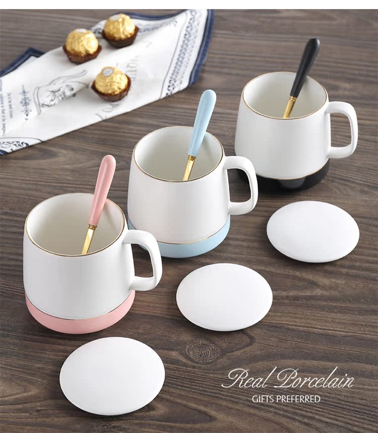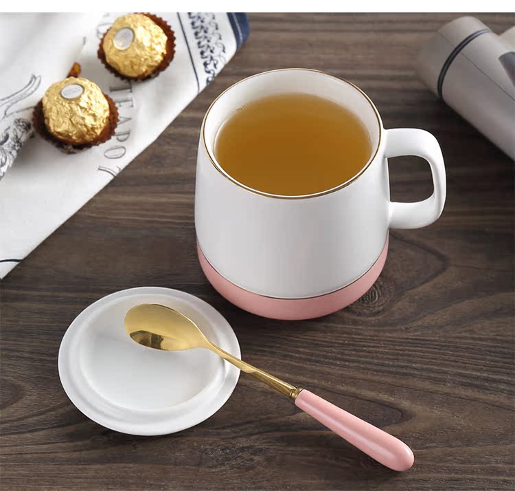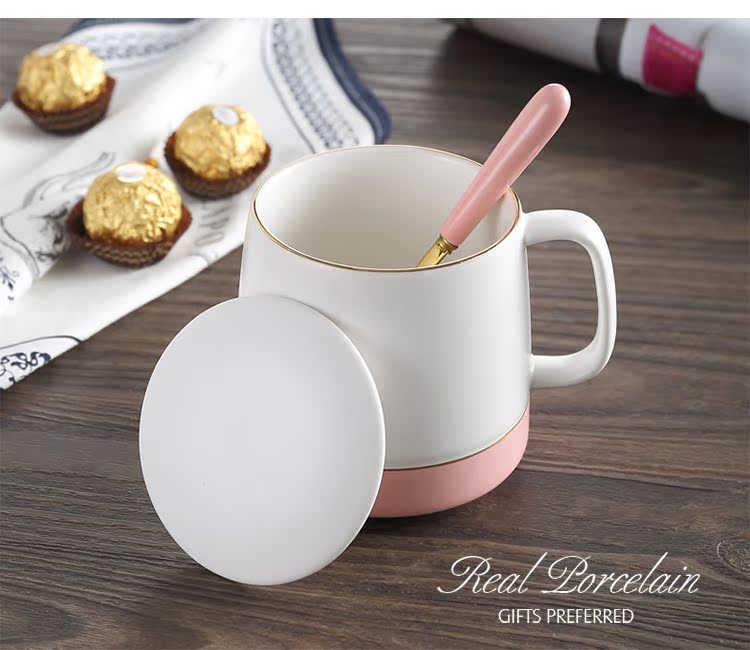 馬克杯禮盒裝-粉色可愛水杯個性帶蓋勺大牛奶咖啡杯 辦公室創意陶瓷馬克杯禮盒裝